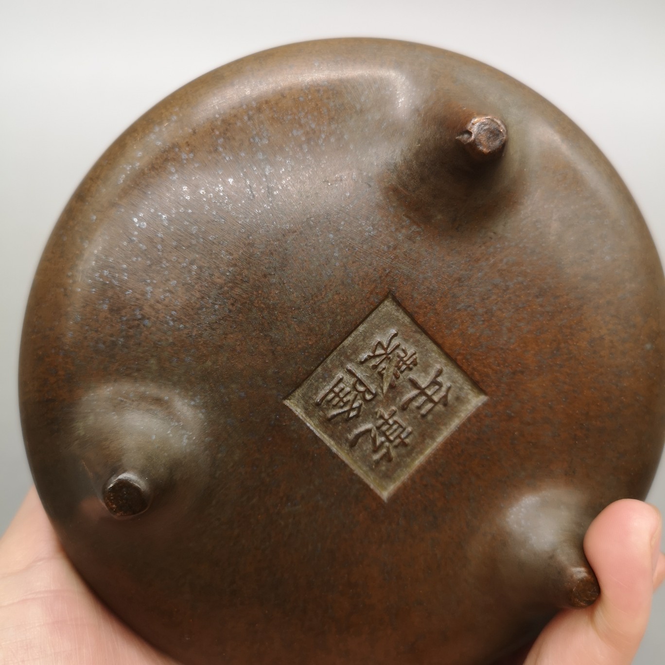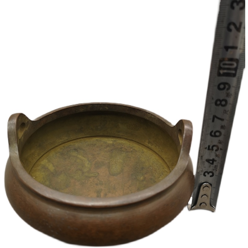Ancient play Miscellaneous antique made old crafts Gift Hem Accessories double-ear tripored stove imitation red copper incense stove Incense Stove Home Pendulum