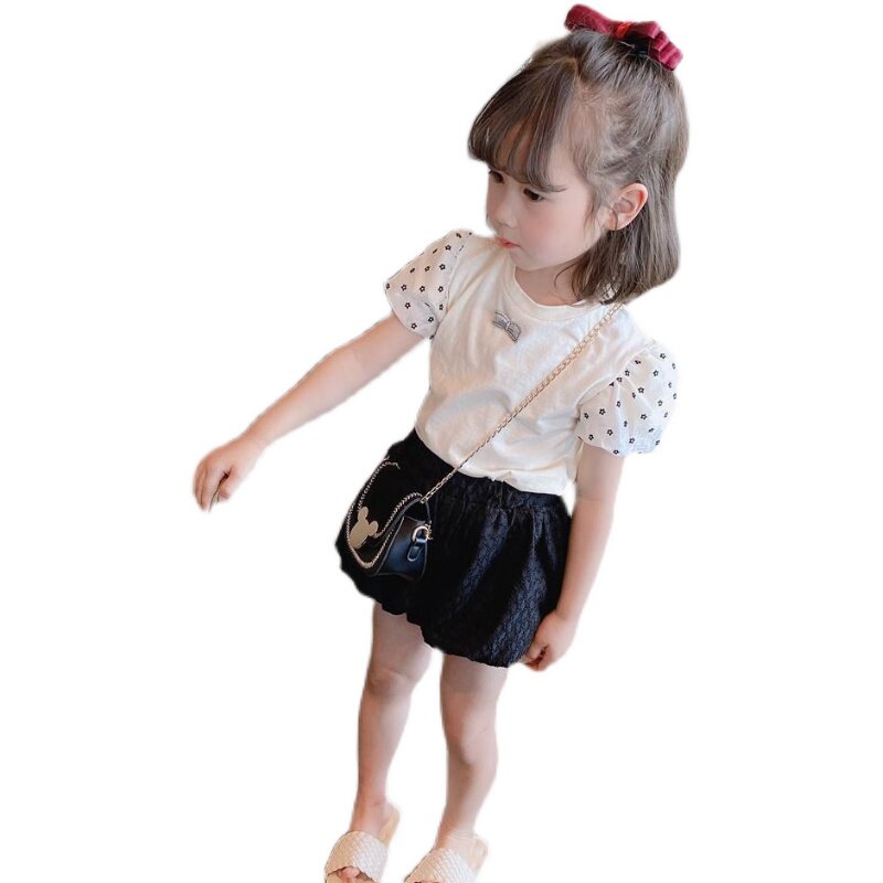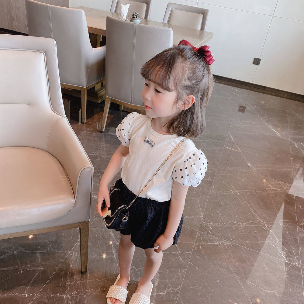 Girls short-sleeved T-shirt 2022 summer girl baby puff sleeve thin section round neck top children's summer bottoming shirt tide