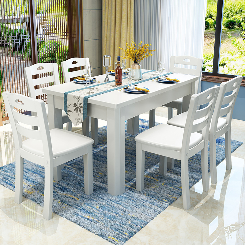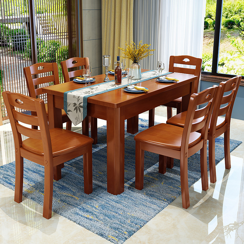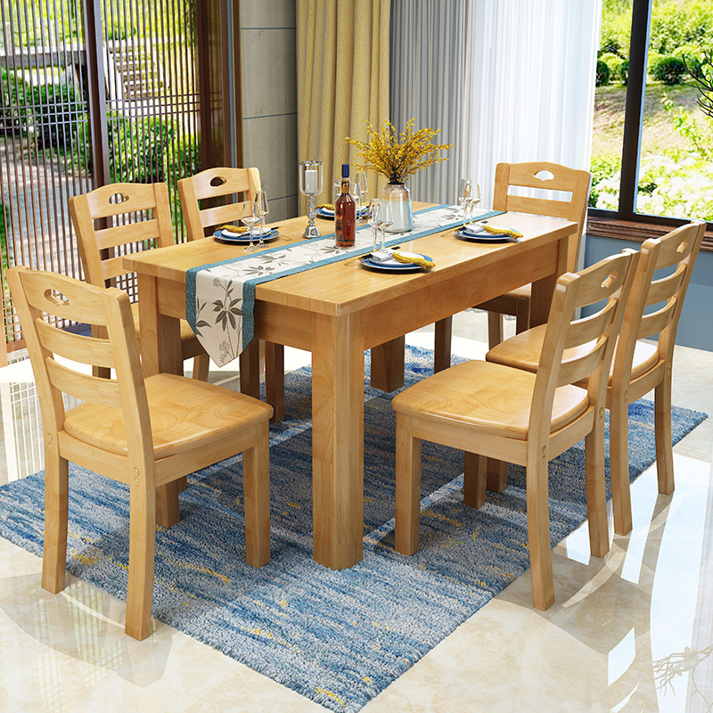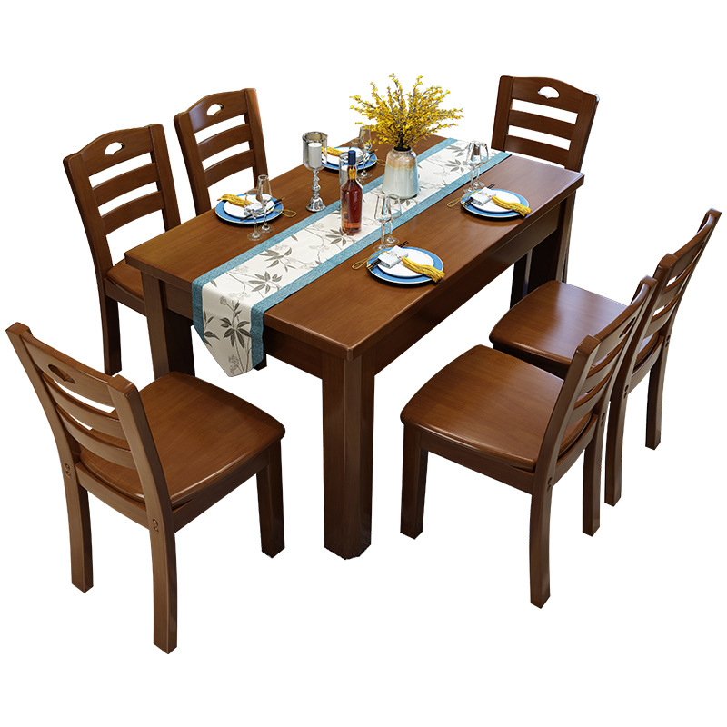 Solid wood dining table and chairs set in Chinese style One table six chairs Economy Type dining room Dining Hall Kit Innate