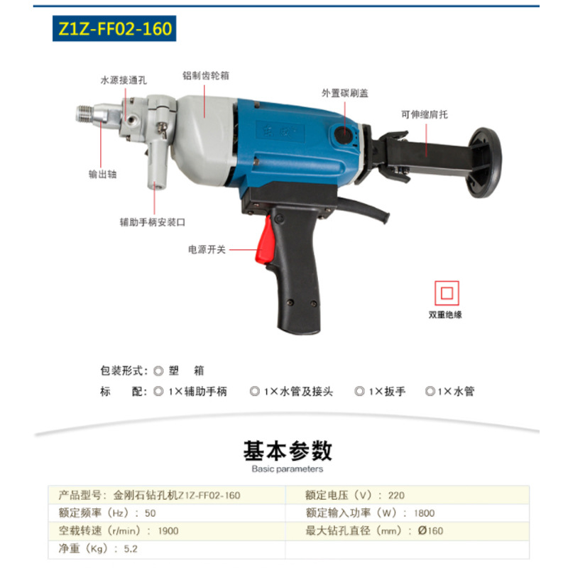Dongcheng drilling machine Z1Z-FF02-160 diamond drilling machine high power 1800 watt concrete drilling water drill