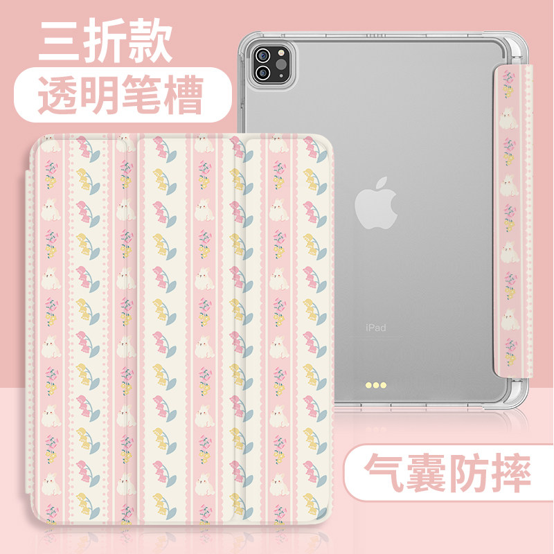 Elegant ipad9 protective sleeve 2021ipad new trifold air4 small fresh mini6 with pen slot transparent soft shell 10 2 inch ninth generation rear shell iPad airbag silicon