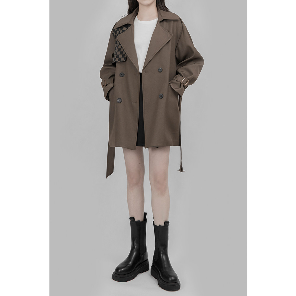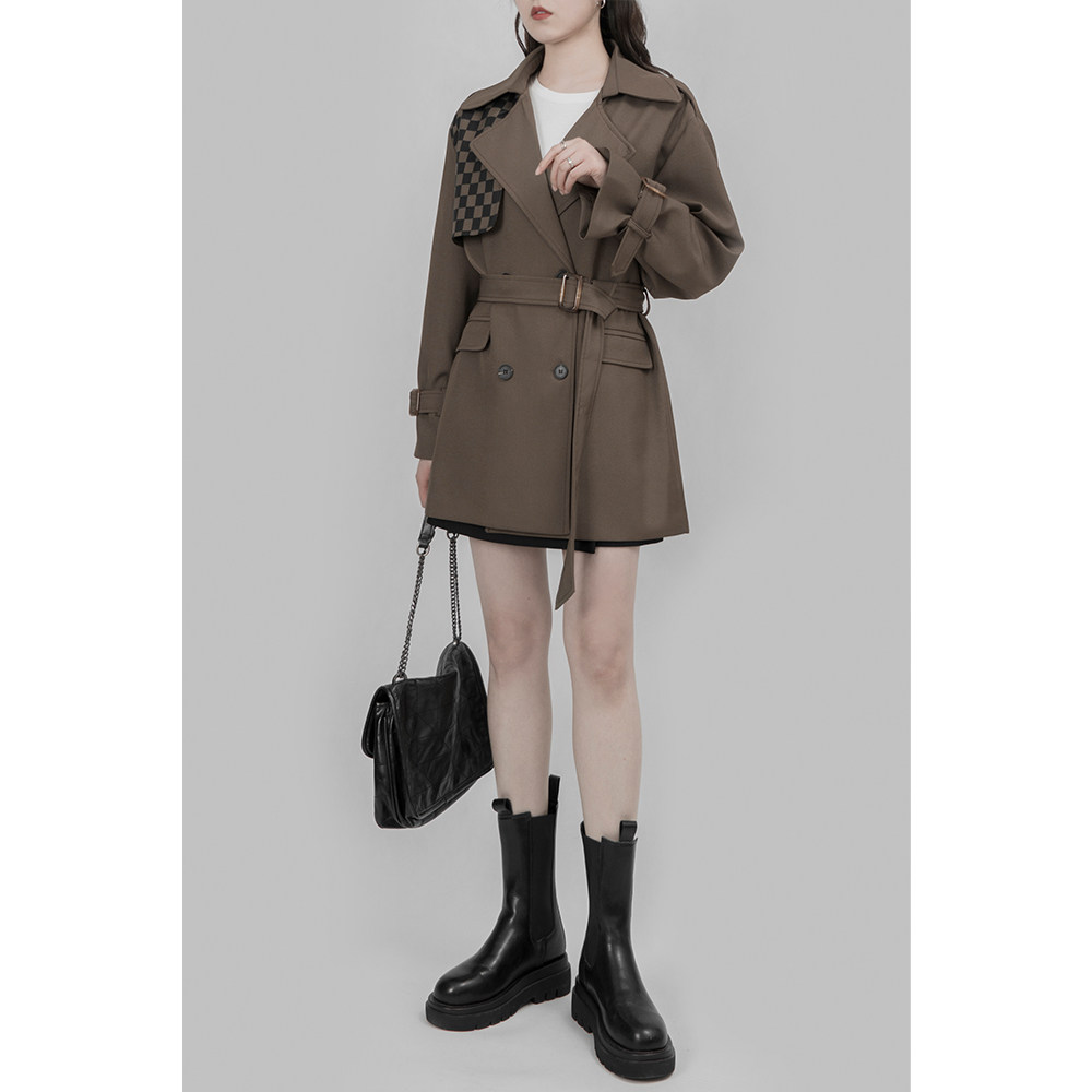 WAVY EGG wavy egg casual parquet Chessboard Gridiron Woman Temperament Loose Design Sense Spring Closedown Jacket