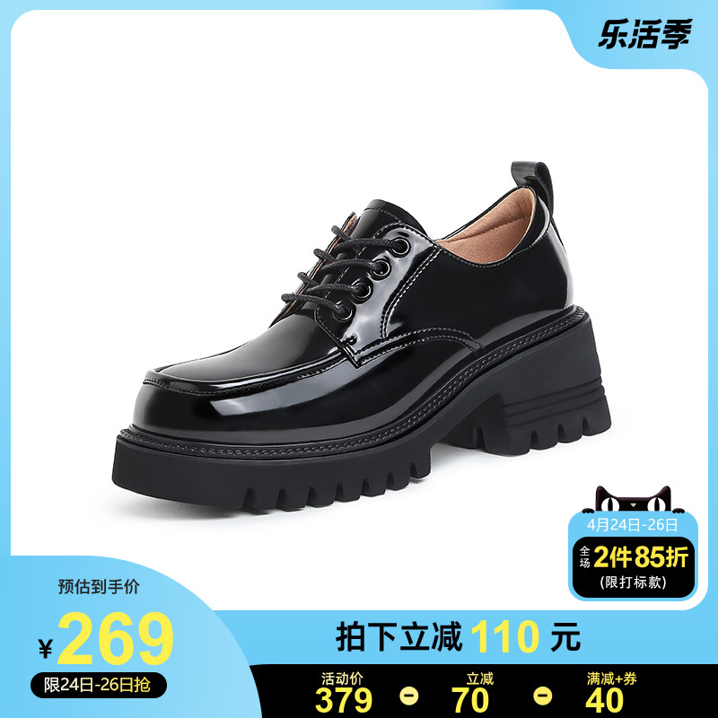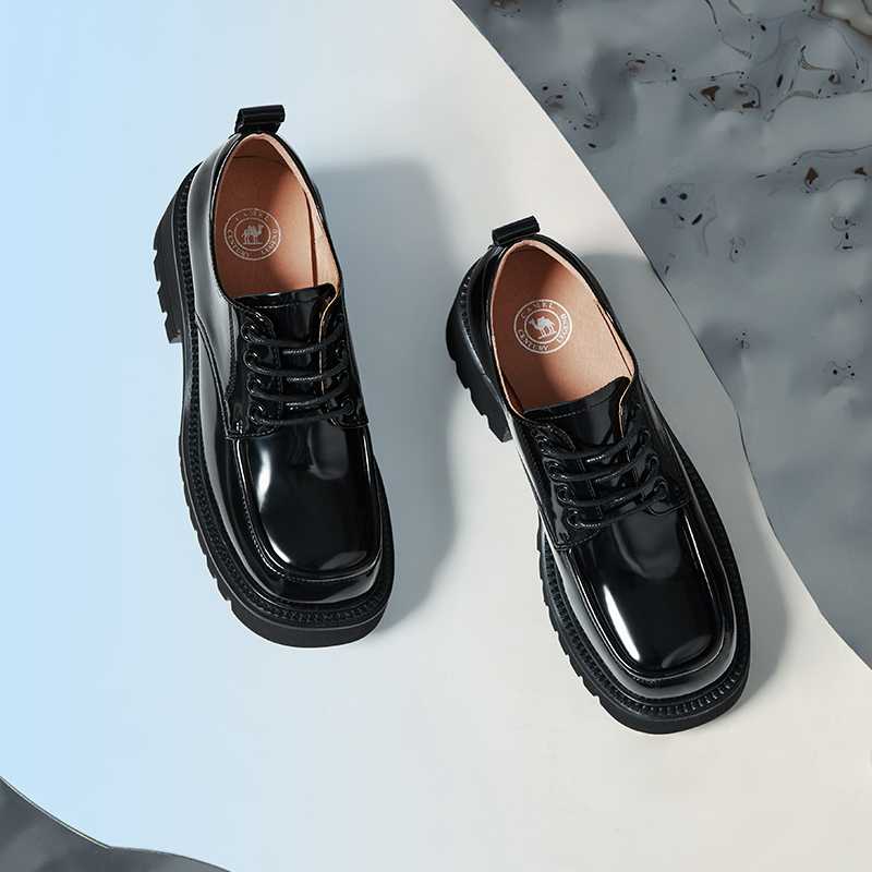 Camel women shoes 2022 Spring new genuine leather square head lacing casual coarse heel thick underbag shoes female jk small leather shoes
