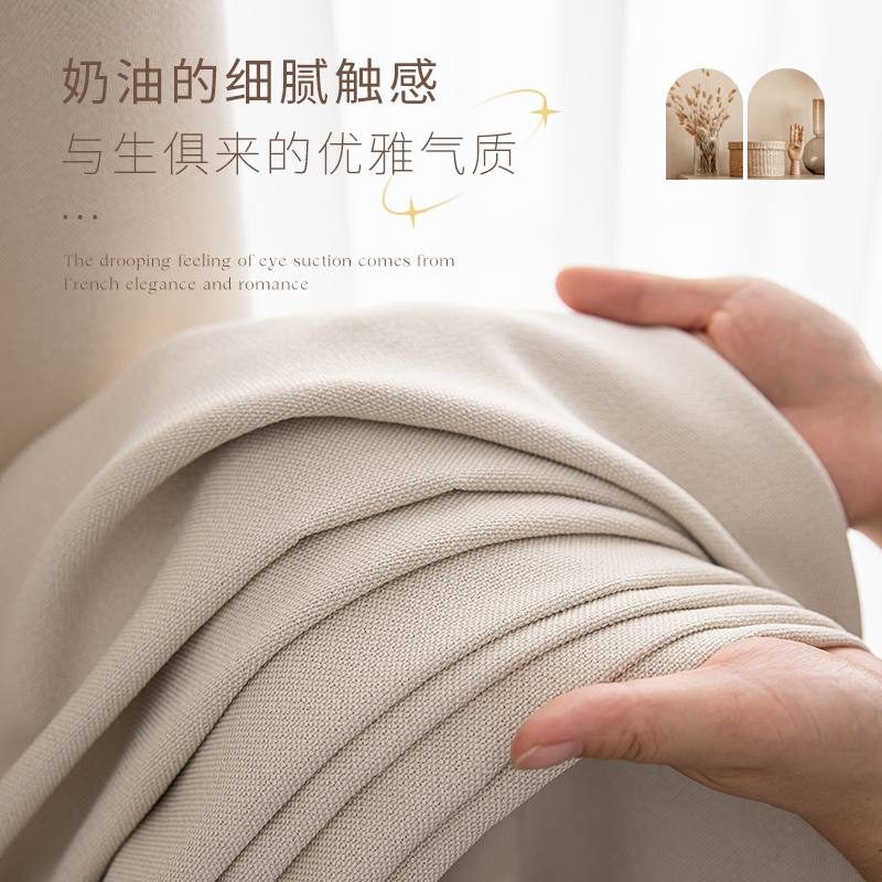 Milk Oil Color style curtains 2022 New living room Shading Bedroom Ins Wind Days Style Light Lavish Milk Tea Superior 8