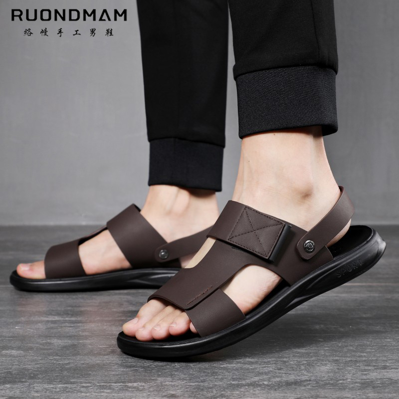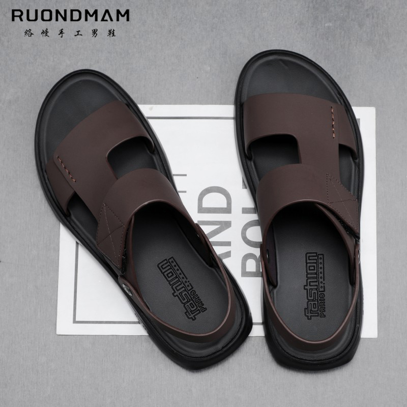 RUONDMAM summer men's thick-soled sandals soft bottom non-slip leather sandals outdoor leisure high-end beach shoes