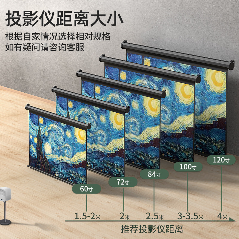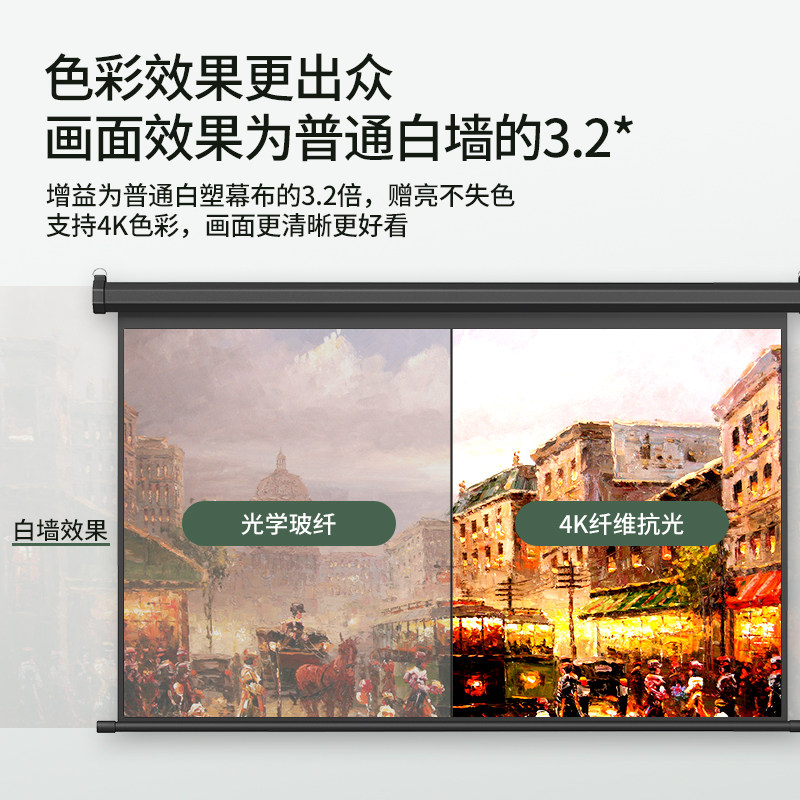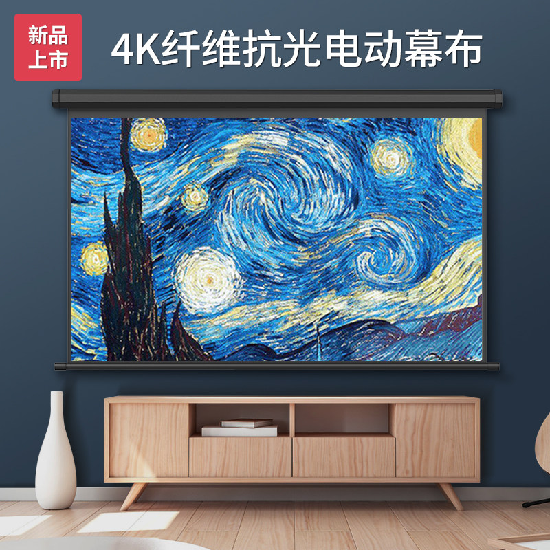 Jimi motorized projector screen anti-light home wall hanging projection wall curtain lifting anti-light 100 inches 120 inches living room bedroom 4K HD photon projection cloth suitable for jimi projector screen