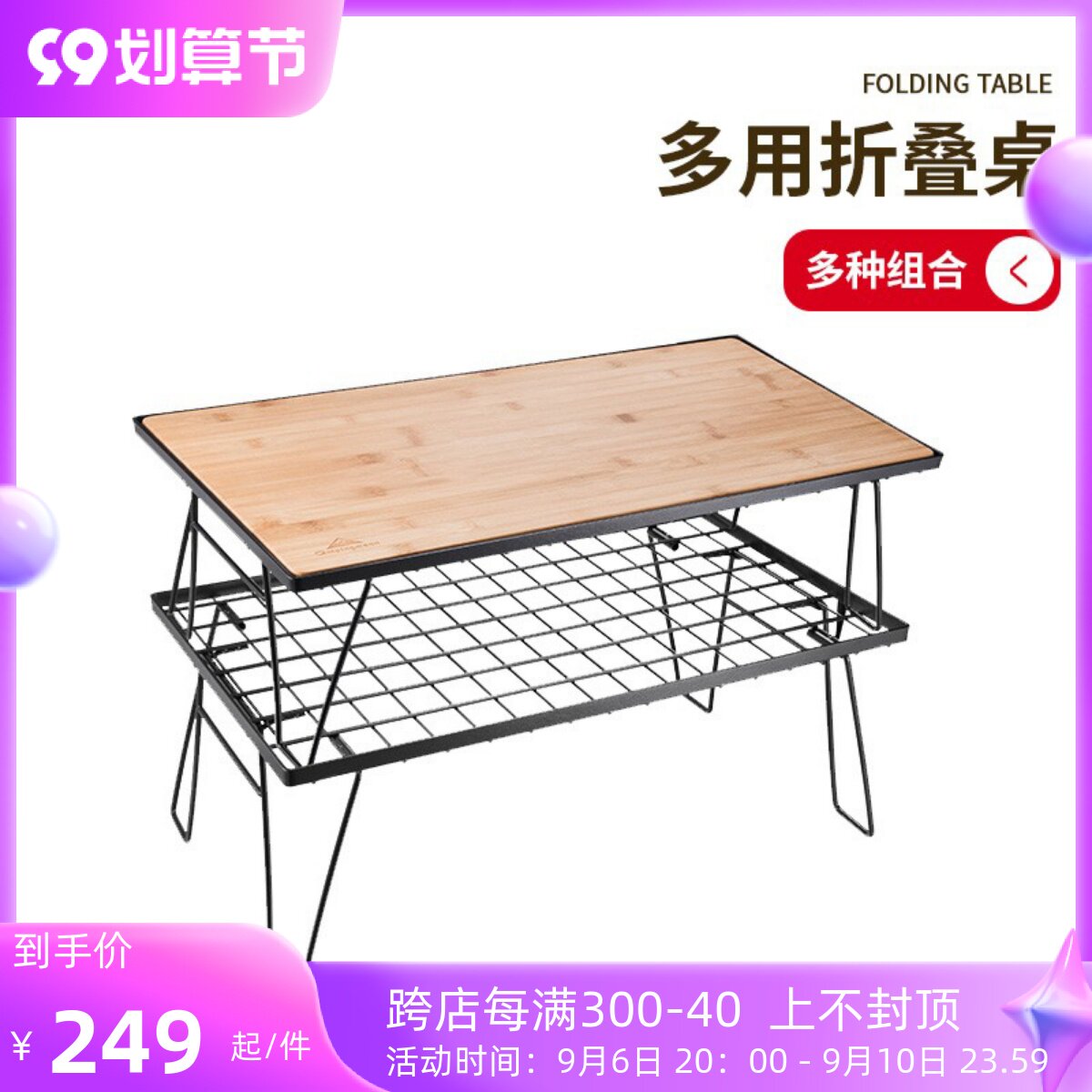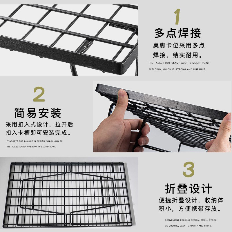 Portable outdoor easy folding table multi-layer iron barbecue picnic table car on self-driving small tabletop table