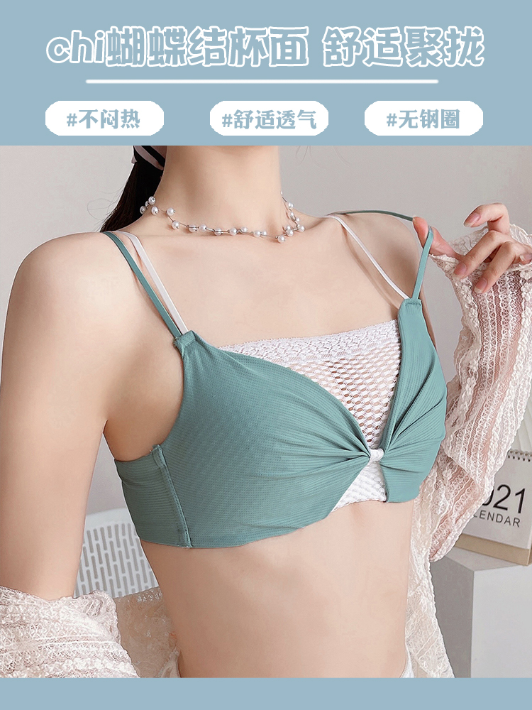 Breath wrapped bras with small chest underwear gathered beautiful girl breeze breast anti-walking steel-free bra summer