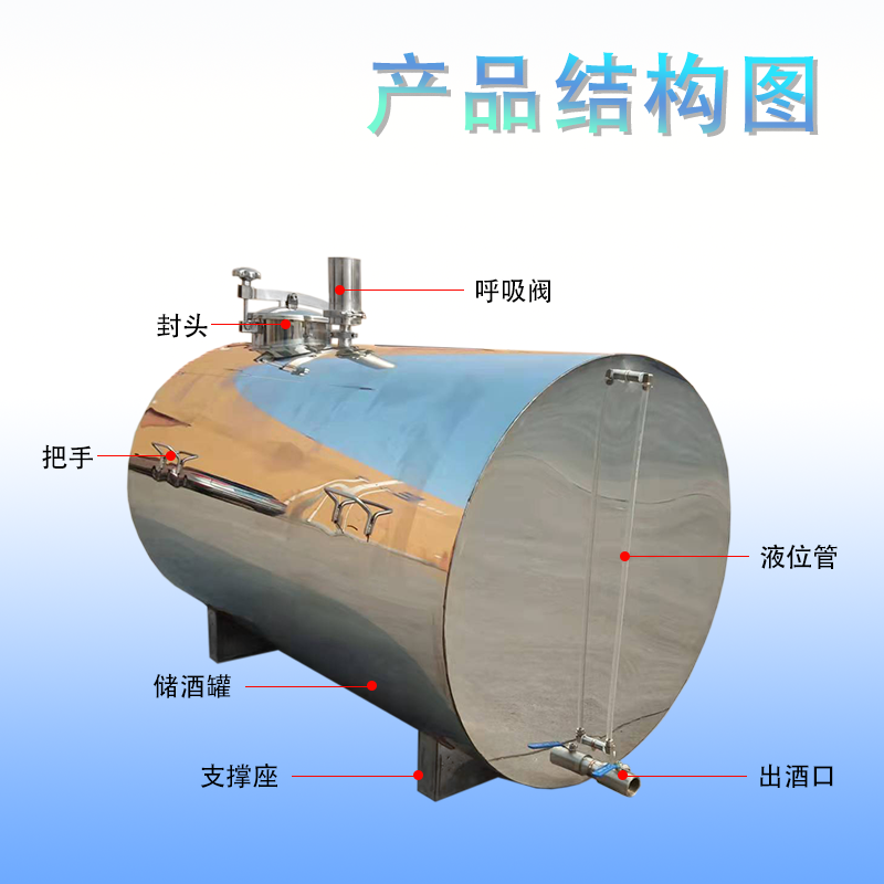 Food grade stainless steel wine tank large 304 horizontal storage wine container liquid storage alcohol tank seal custom