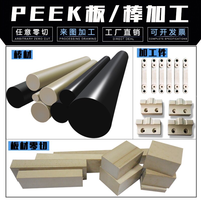 Imported colour peek plate black antistatic PEEK stick plus slim conductive polyetheretherketone pps plate stick CNC machined