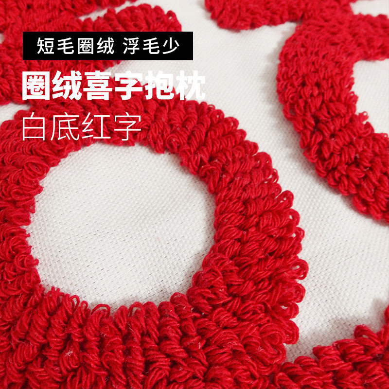 Red pillow wedding happy word three-dimensional embroidery wedding embroidery decoration pillow wedding room bedroom gift pillow cover