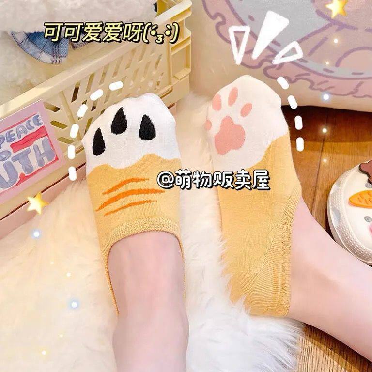 ins tide summer breathable thin light mouth socks boat socks Sweat Anti Slip Invisible Socks Socks Cute Cat Paw Socks Child-Taobao