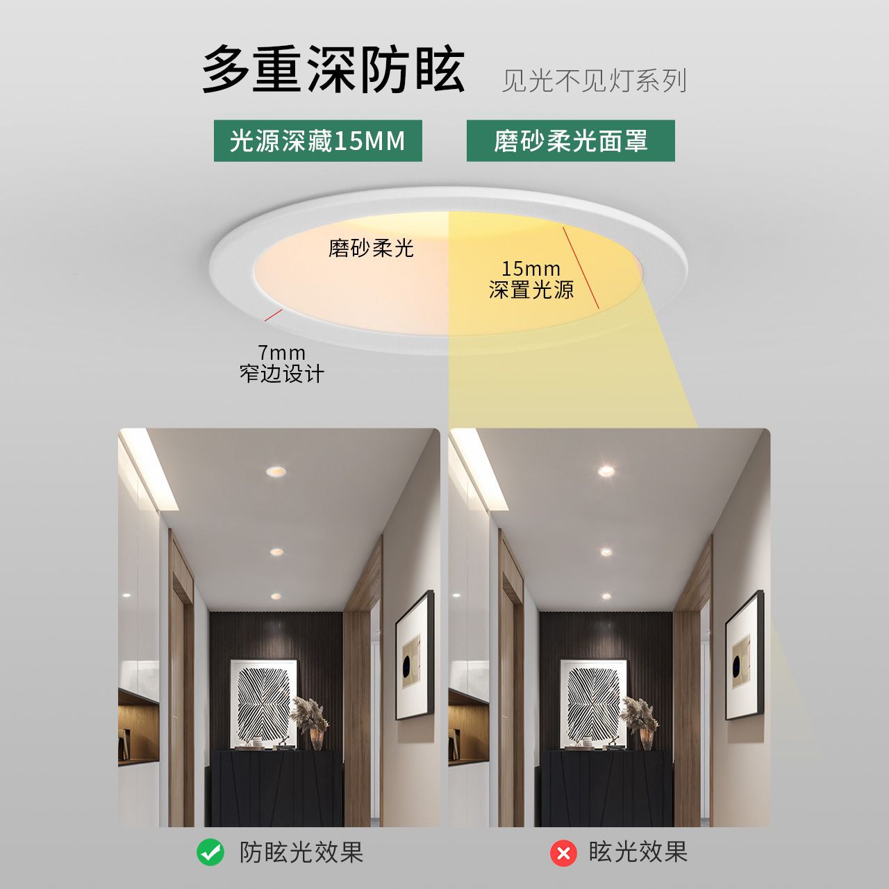 Rexy Lighting LED Anti-glare Lamp Embedded Three-Color Changing Household Living Room Narrow-Side Ultra-Thin Aluminum Ceiling Light