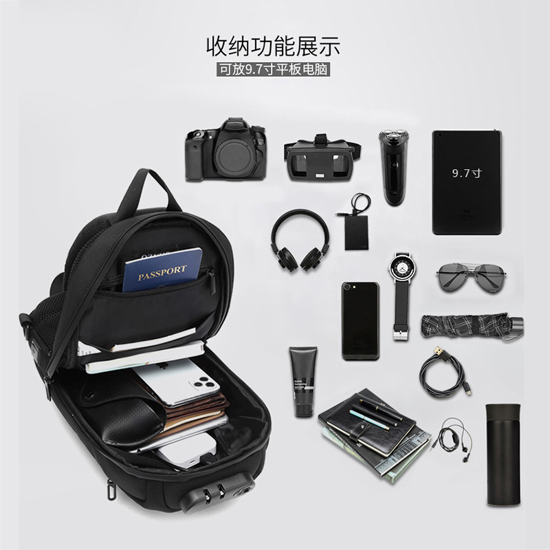 Riding Mountaineering Sports Leisure Chest Bag Outdoor Backpack Shoulder Bag Student Black Waterproof Large Capacity Messenger Bag Men