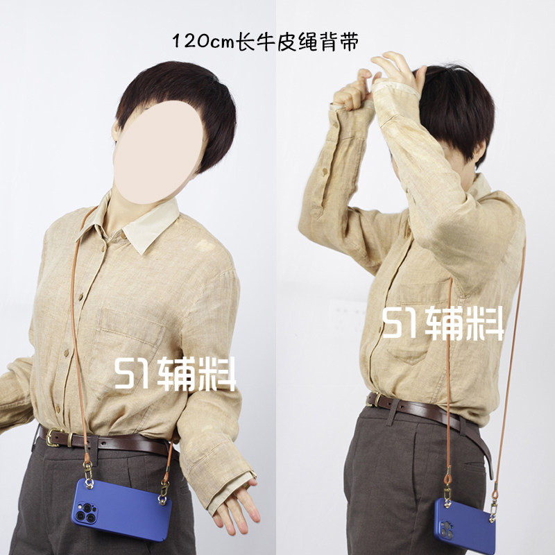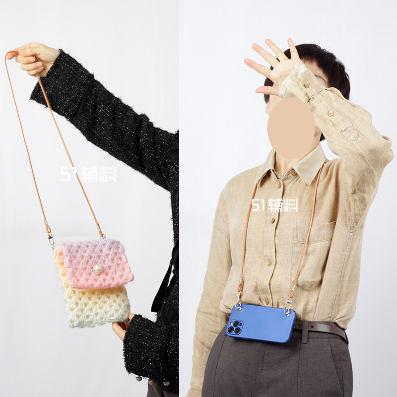 Mobile phone hanging rope genuine leather cow leather rope inclined cross holding baby bag handmade DIY male and female 100 lap hanging neck replacement bag with 51 accessories