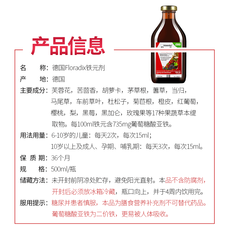Floradix German Iron Metaliquid Pregnant Woman Pregnancy Iron Supplements Iron Supplements Iron Oral Liquid Iron iron 500ml