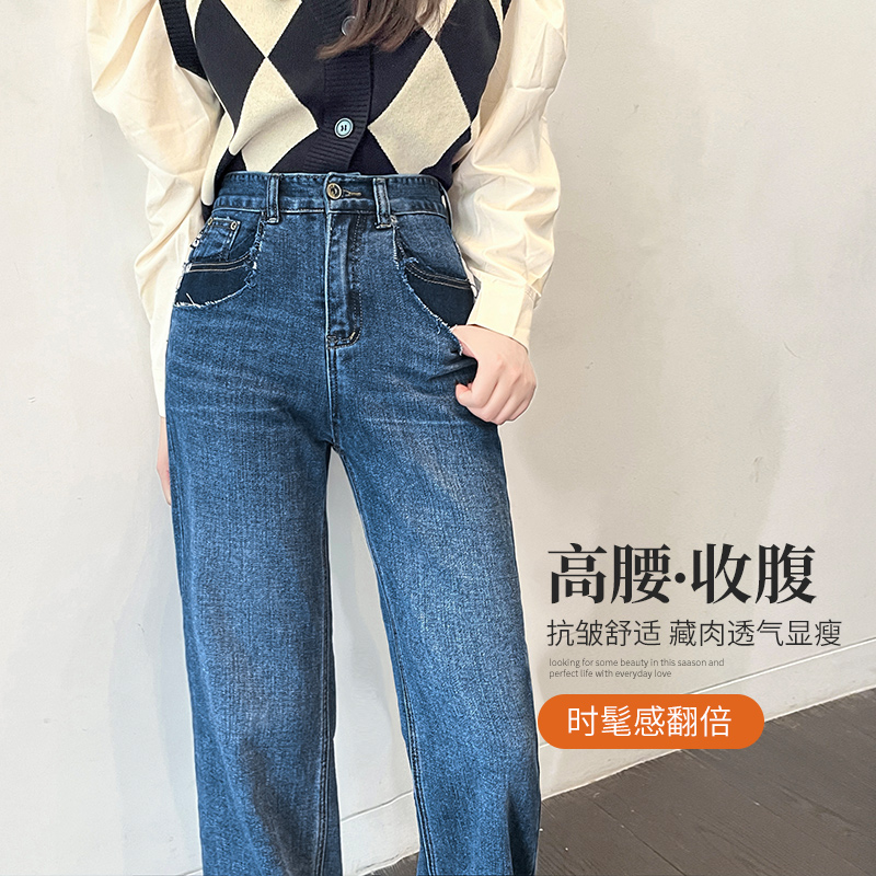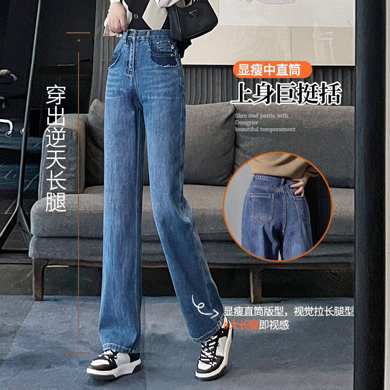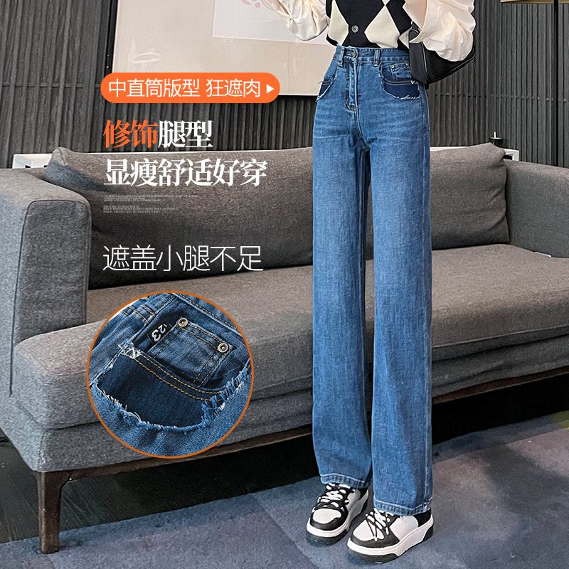 Wide-leg jeans women's high-waist slimming 2022 spring and autumn new straight-leg loose drape all-match floor-mopping pants