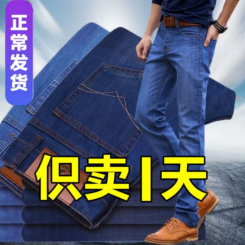 Summer thin elastic jeans men loose straight tube long pants men's new working leisure dark men's pants