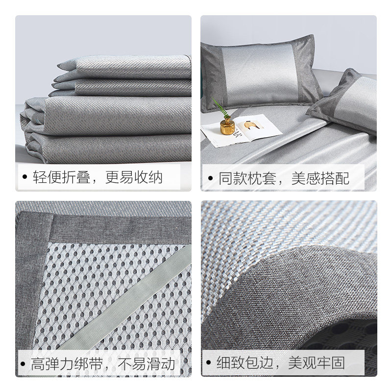 Thyme Home Textile Embroidered Ice Vines Mat Summer Passable Ice Silk Mat Summer Naked Sleep Three Sets