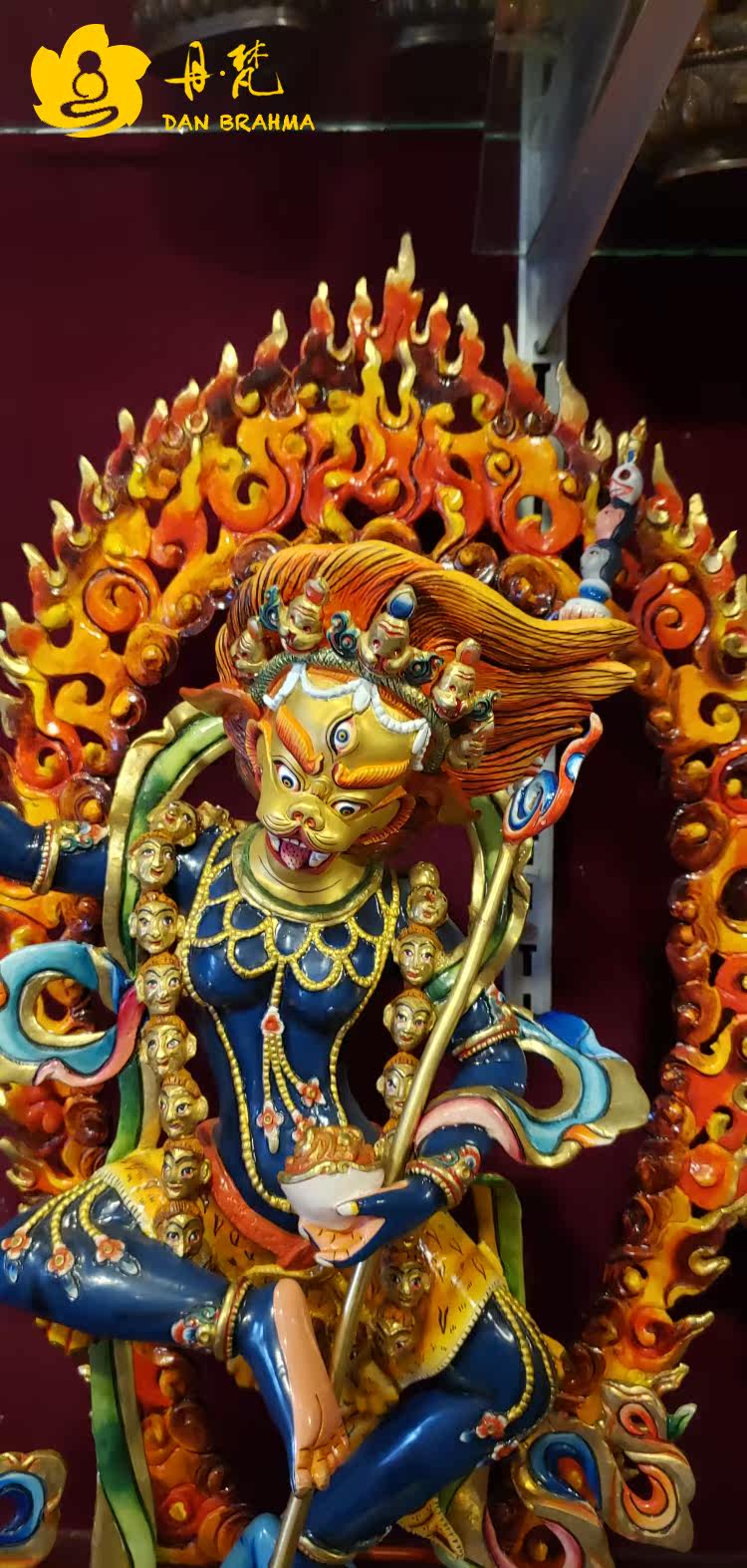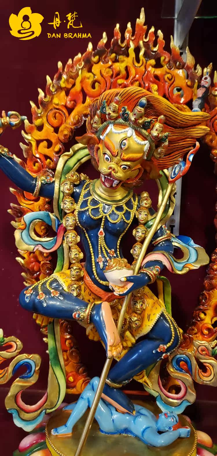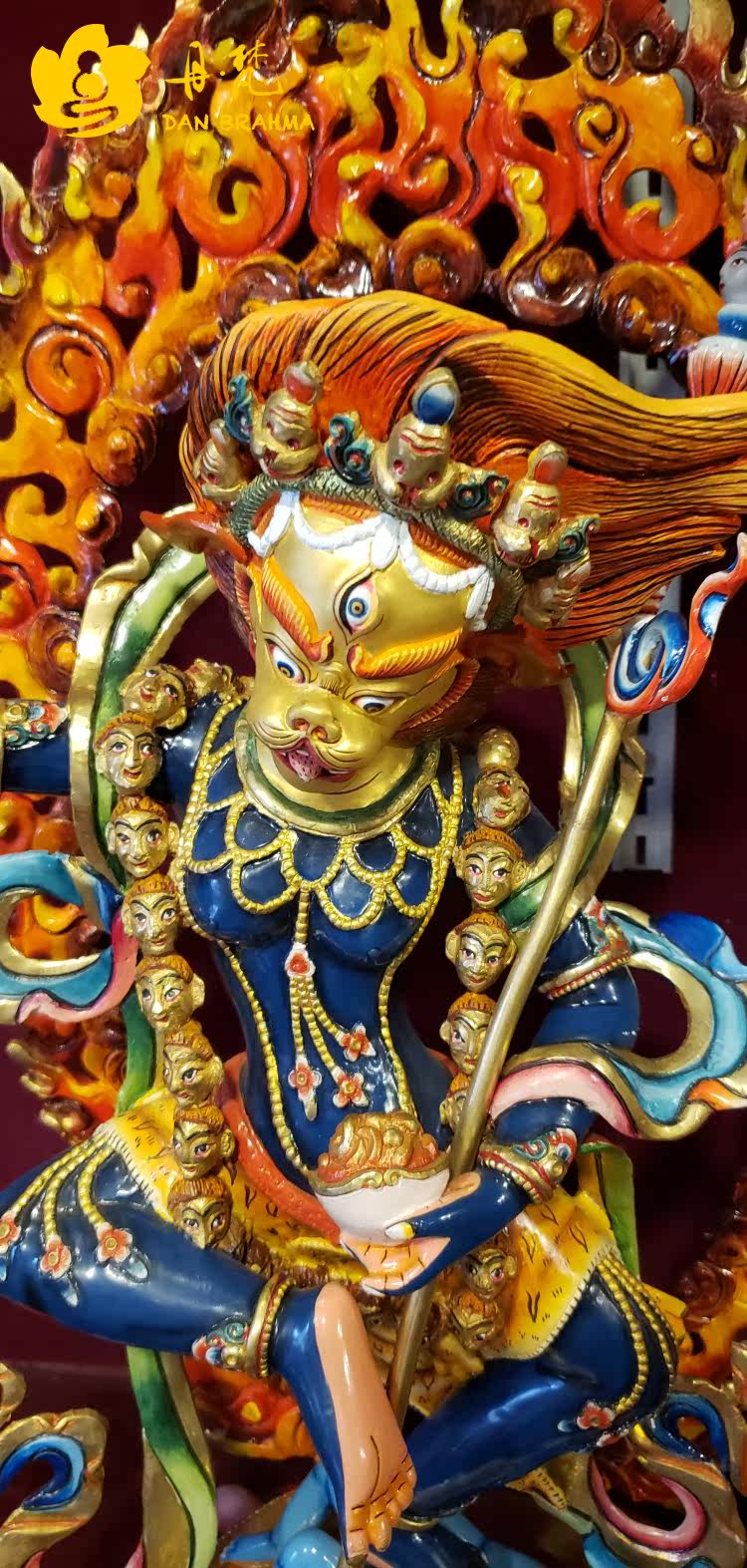 Lion Face Buddha Buddha Statue Nepal Full-Time Gold Color Painted Lion Face Karate Hand Bronze Sculpture Hair Care 50cm