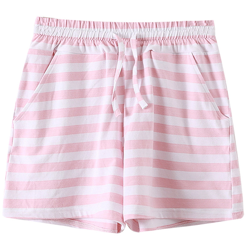 Summer New Woman Pure Cotton Shorts Sleeping Pants 50% Pants Stripe Sweat and breathable mid-waist sports Home can be worn outside