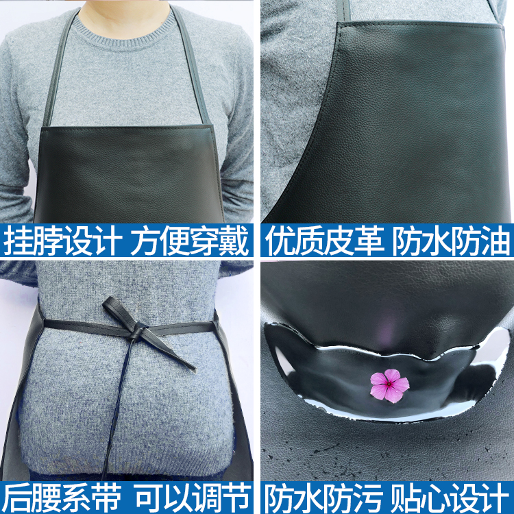 Waterproof and oil-proof leather apron adult men and women fashion kitchen hotel factory work clothes long version thickened pu apron