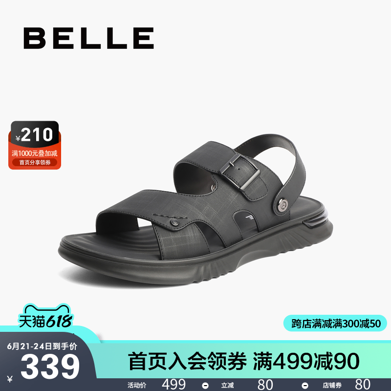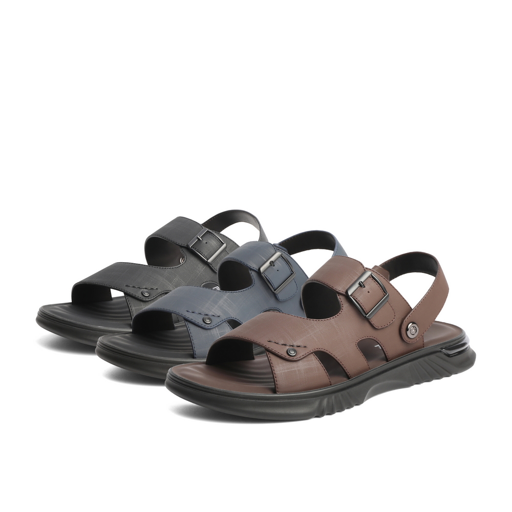 Thyme Casual Genuine Leather Sandals Men 2022 Summer new cow leather Two wearing soft-bottom beach slippers A0692BL2