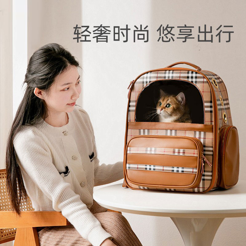Pet plaid cat bag go out portable breathable large-capacity retro leather foldable small and medium-sized dog shoulders