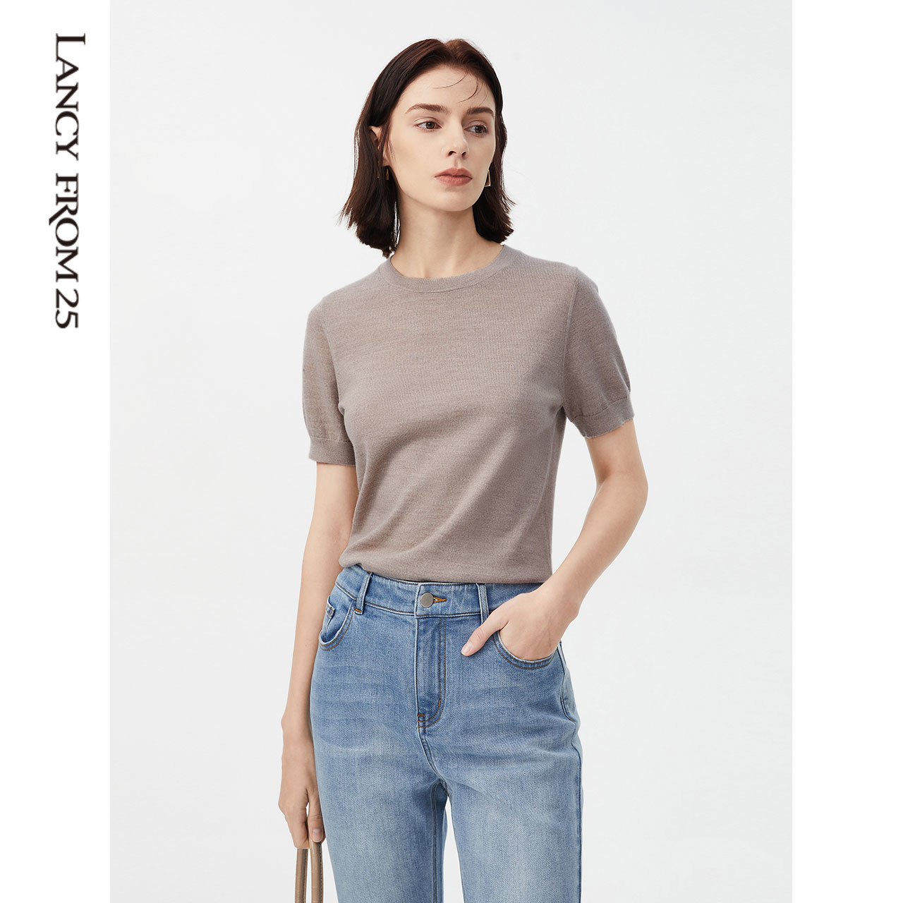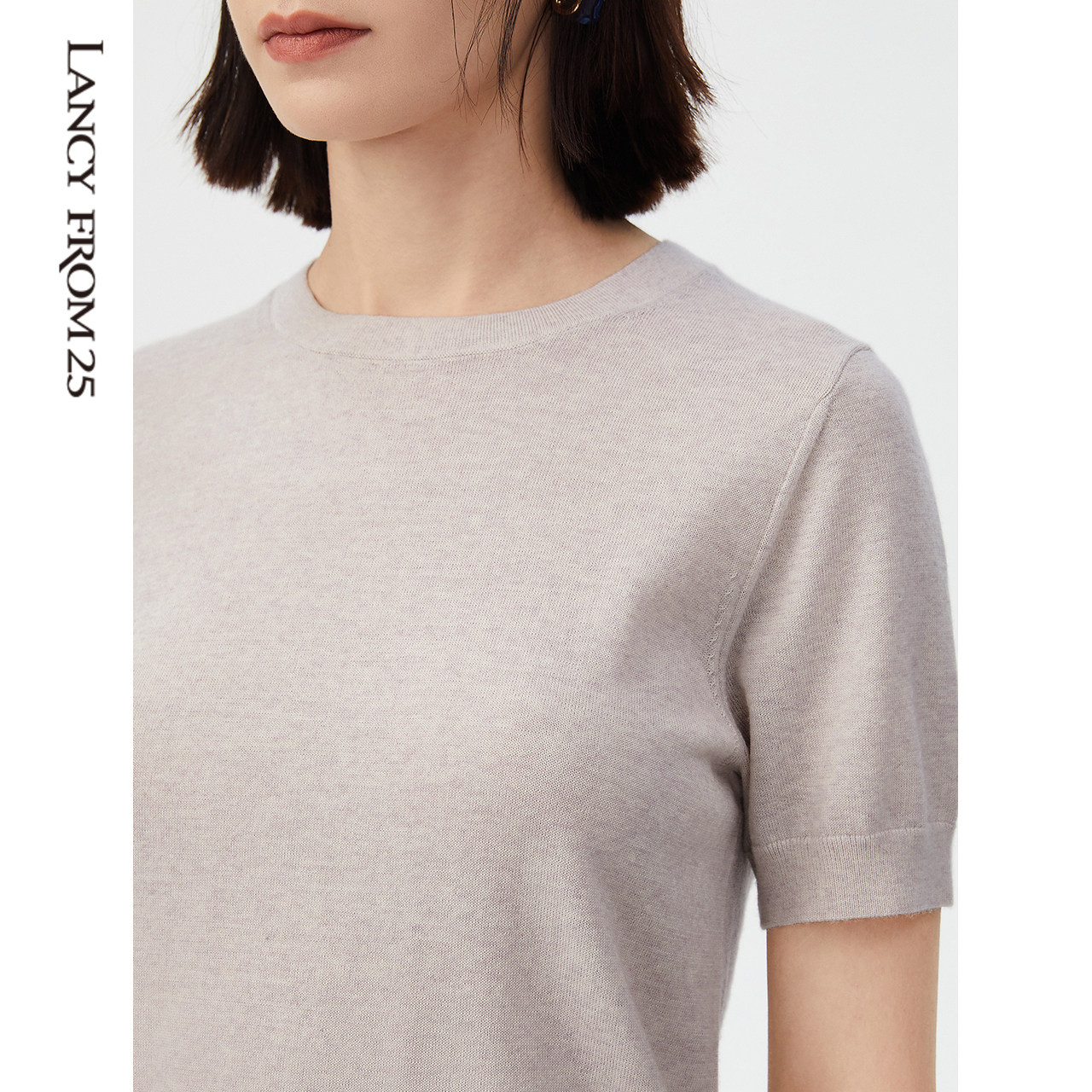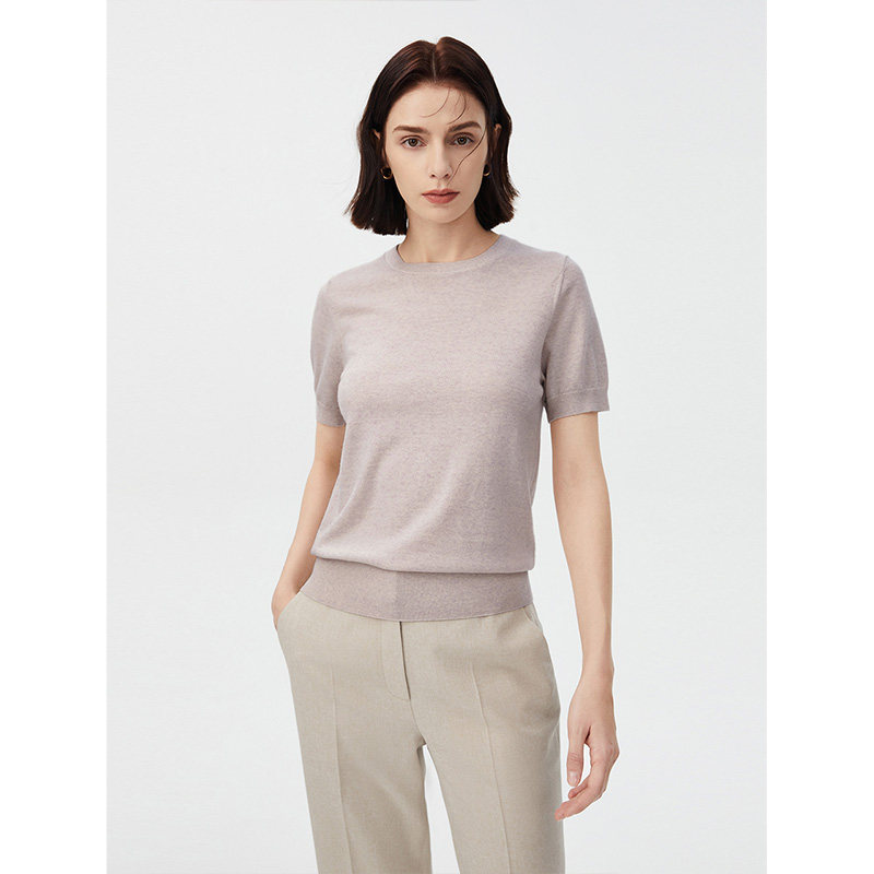 Lanpose Method Pure Wool Knit Cardiovert Woman 2022 Summer New Temperament Casual 100 Hitch Short Sleeve Undershirt