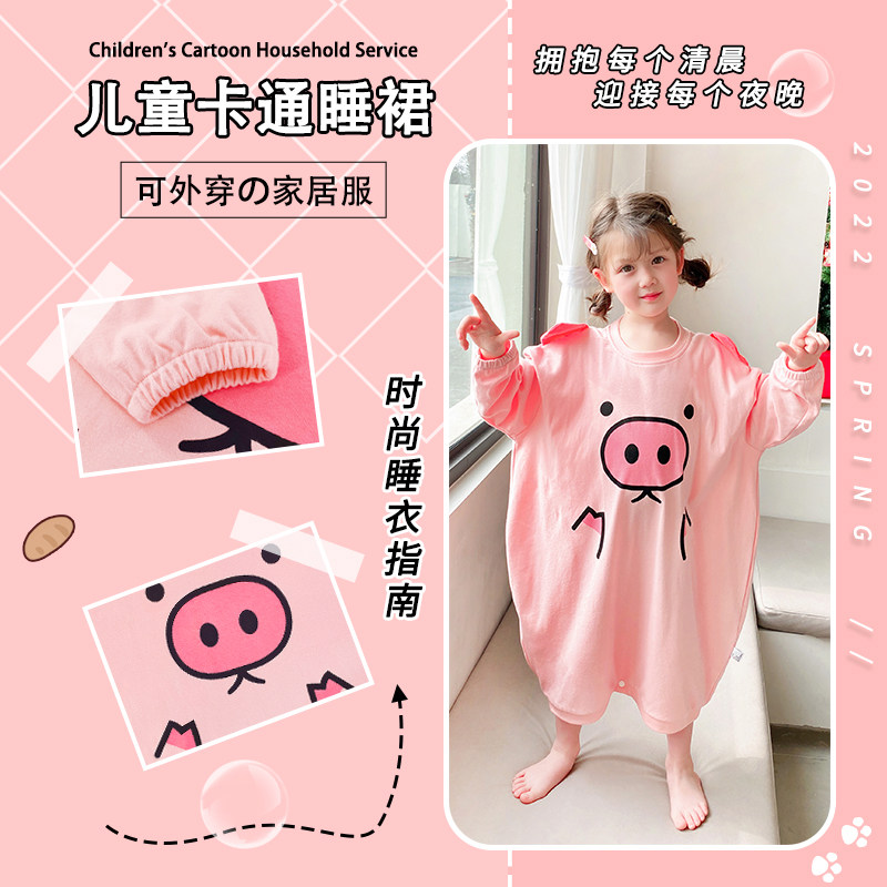 Girls' nightdress pure cotton children's fairy pajamas spring and autumn female baby cartoon long-sleeved princess wind summer 2022 new style