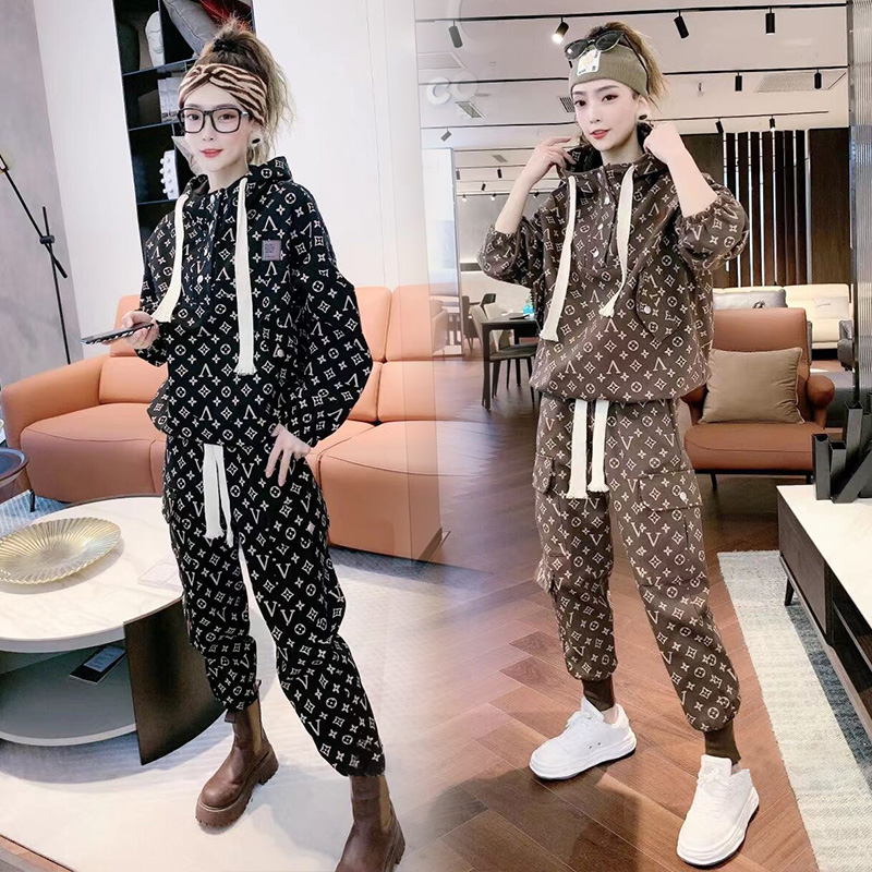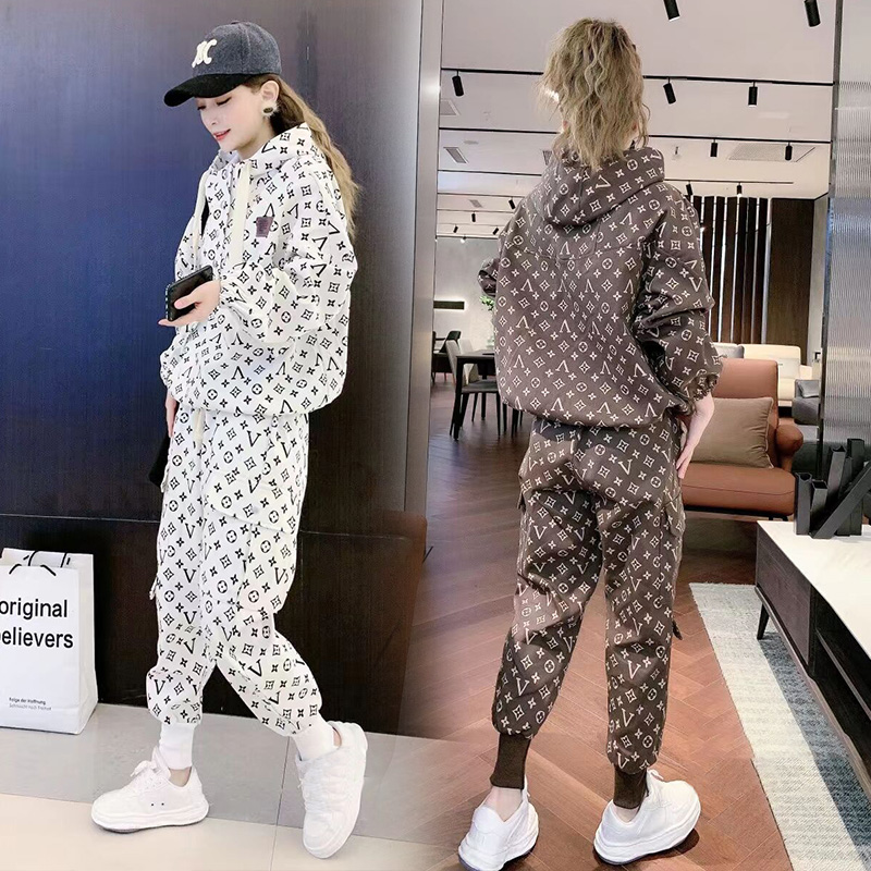 22 years Spring and autumn new sports Leisure printing Two sets of women Fashion tooling Fitness Running clothes Han version Easing Tide