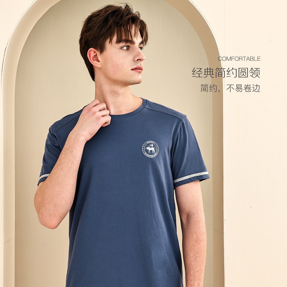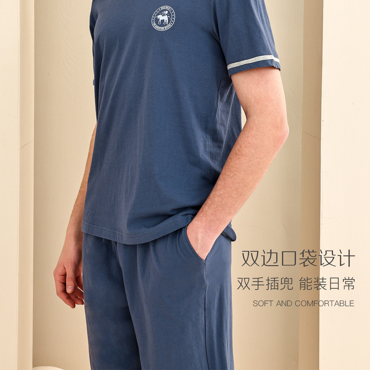 Red bean (100% cotton) summer thin simple crewneck can be worn with short sleeves men's pajamas housewear set