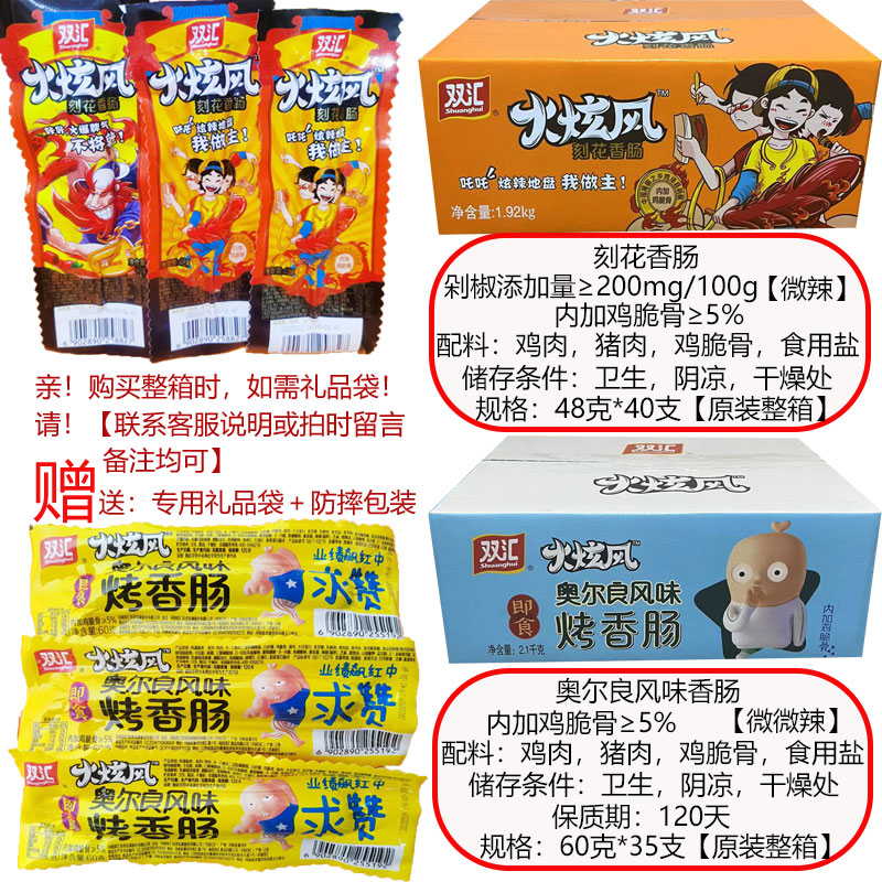 Shuanghui fire whirlwind carved sausage Orleans-style ham sausage whole box ready-to-eat crispy bone sausage delicious meal snacks