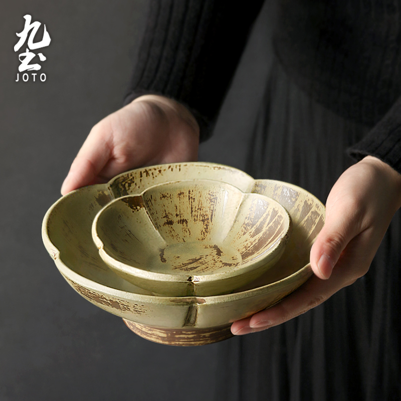 Jiutu Japanese-style handmade petal bowl personality retro rough pottery noodle bowl large soup bowl thickened creative tableware household single