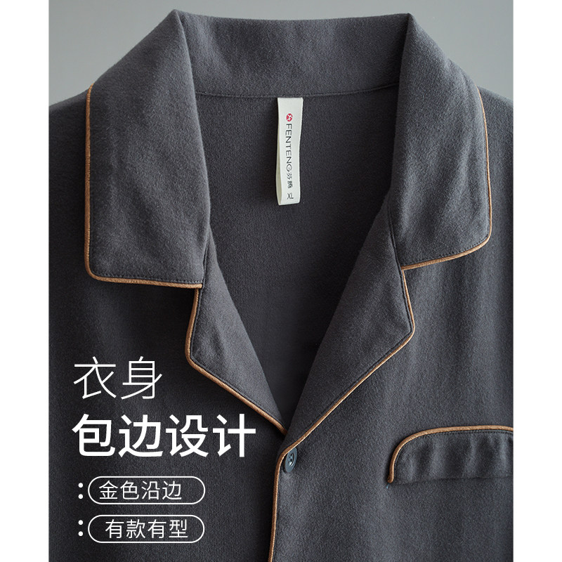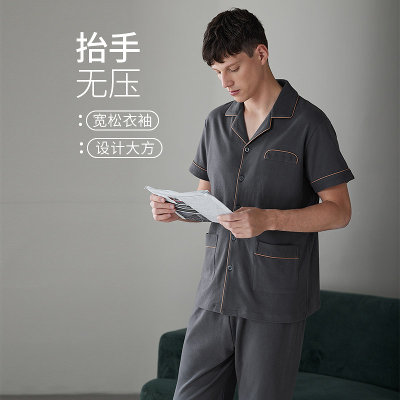 Fenten Summer Pure Cotton Pyjamas Man Short Sleeve Long Pants Full Cotton Big Code Men's Summer Style Casual Cardiovert Suit-Taobao