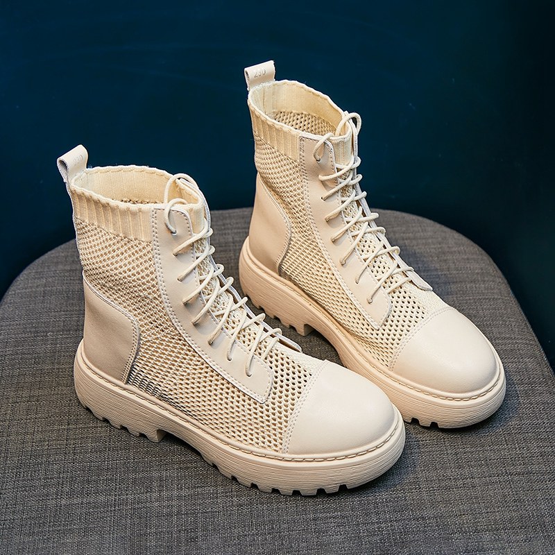 Boots 2022 new exploits Martin boots Summer thin women Nets heightening white short boots hollowed-out thick bottom mesh boots female