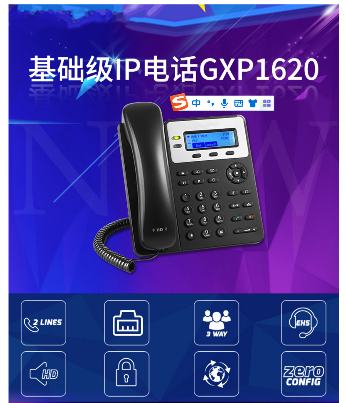 In stock GXP1620 SIP protocol network phone dual network port Chinese English soft light comfortable multi-account registration