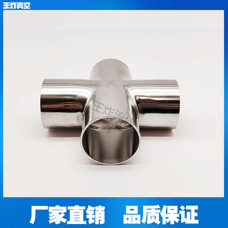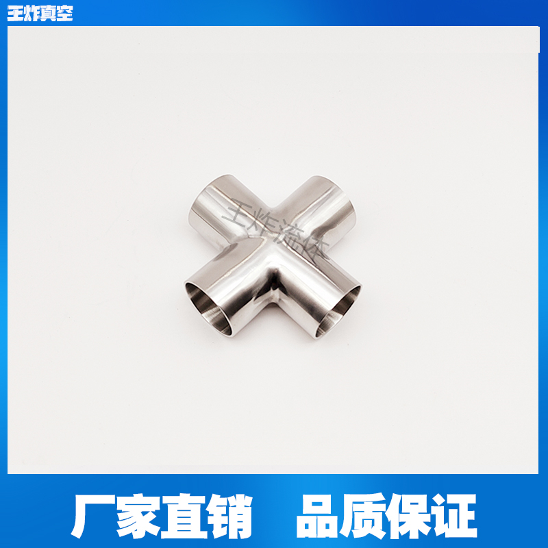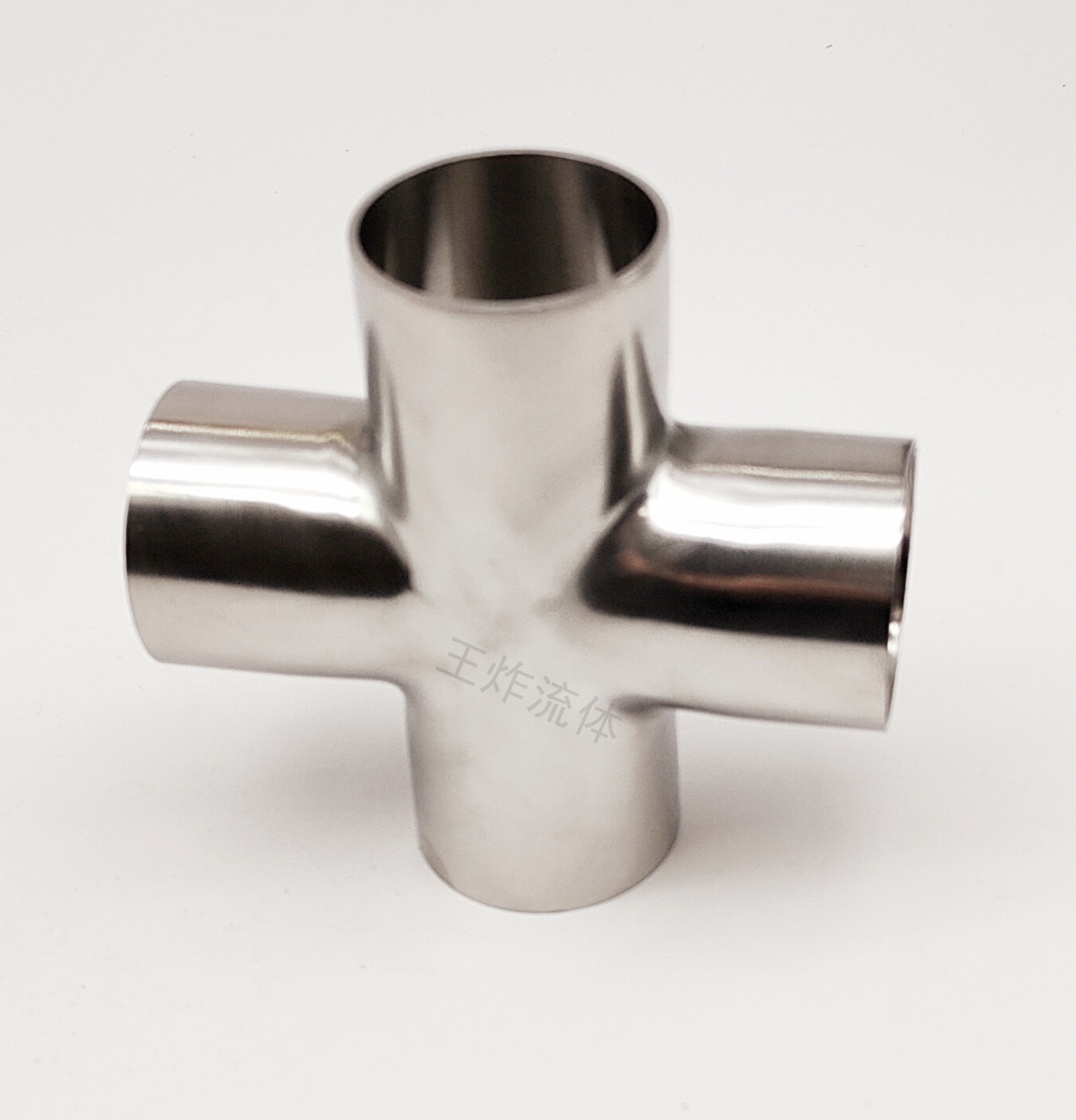 Sanitary 304 stainless steel welded equal diameter four-way butt welding cross-shaped pipe joint inside and outside mirror polished four-way