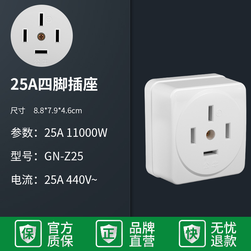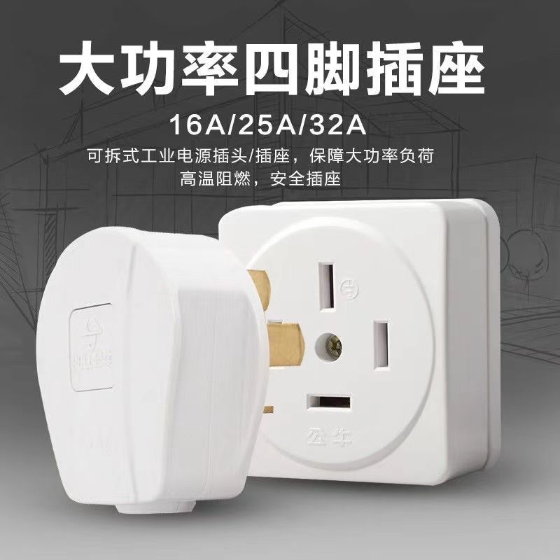 Bull three-phase four-wire plug industrial electric 380V high-power 16A25A32A four-legged 440V water heater leakage protection