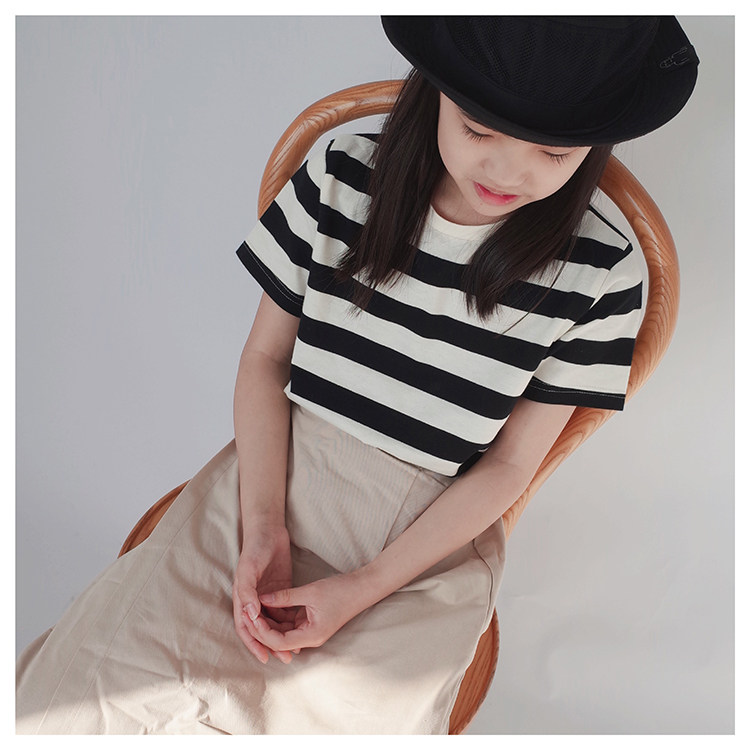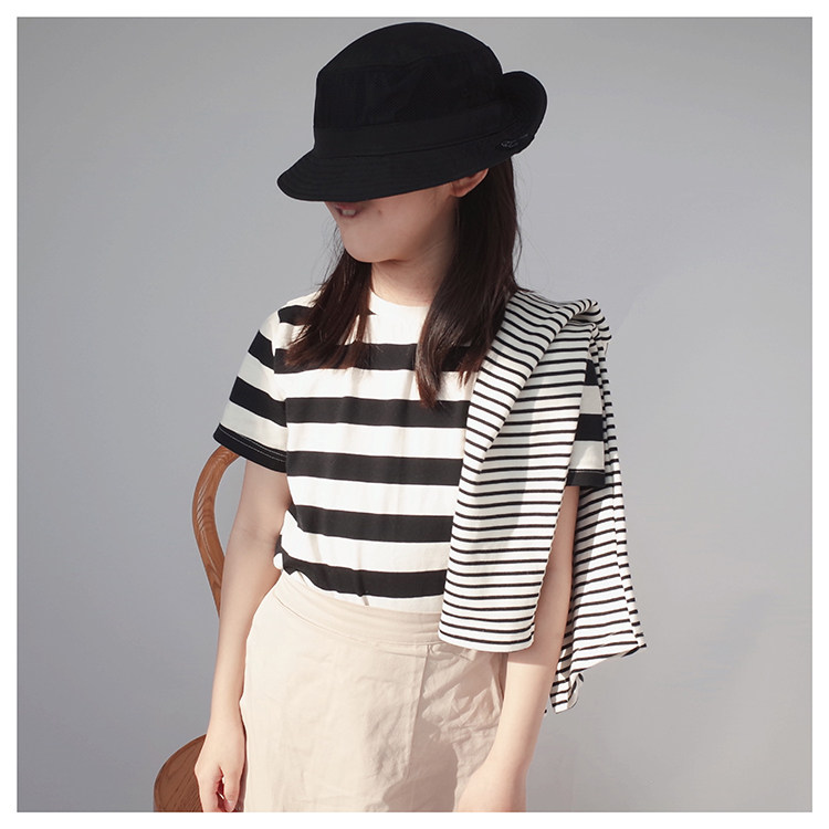 Doll Amy Xia original new custom men and women big children cotton striped short-sleeved round neck basic black and white t-shirt