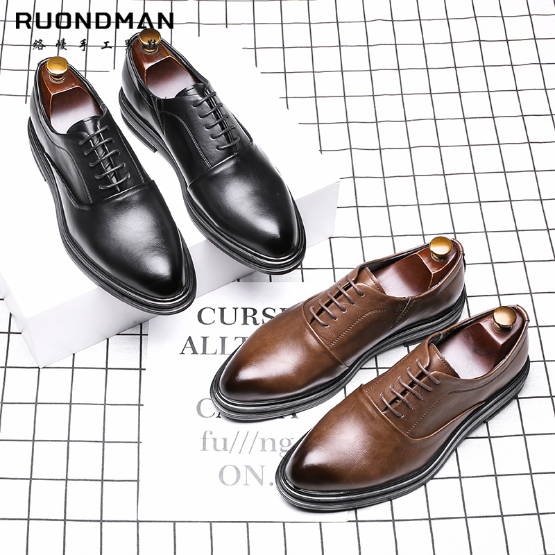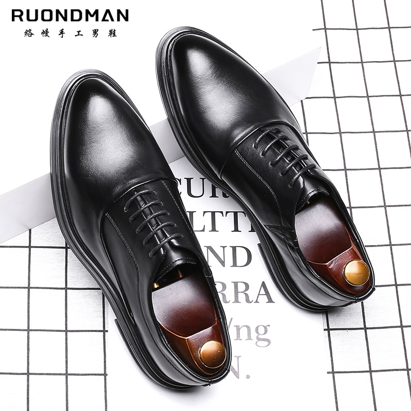 RUONDMAN2022 new business formal leather shoes men's pointed toe thick bottom groom shoes professional work casual leather shoes