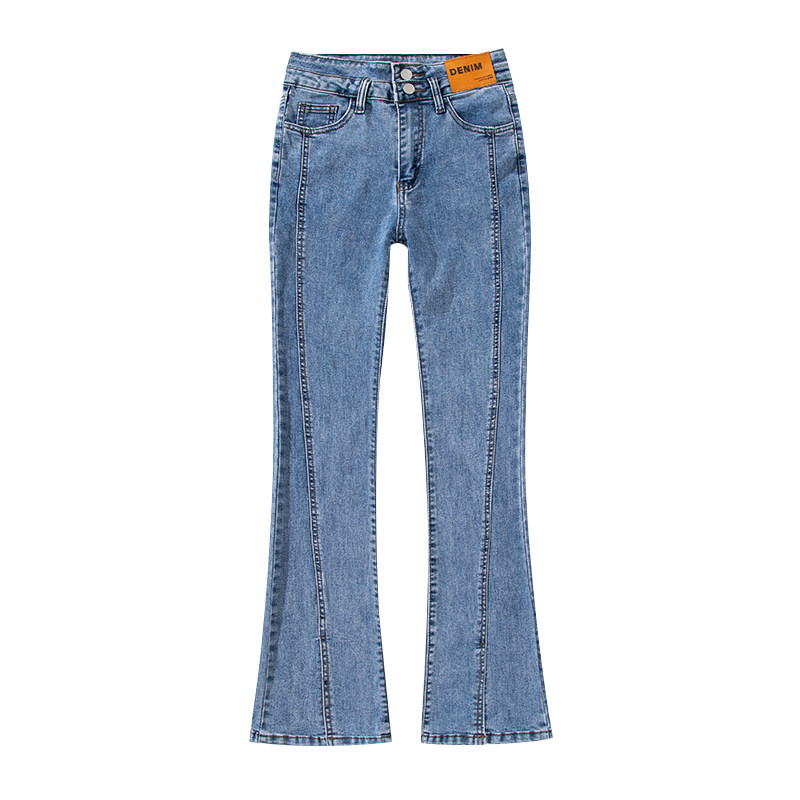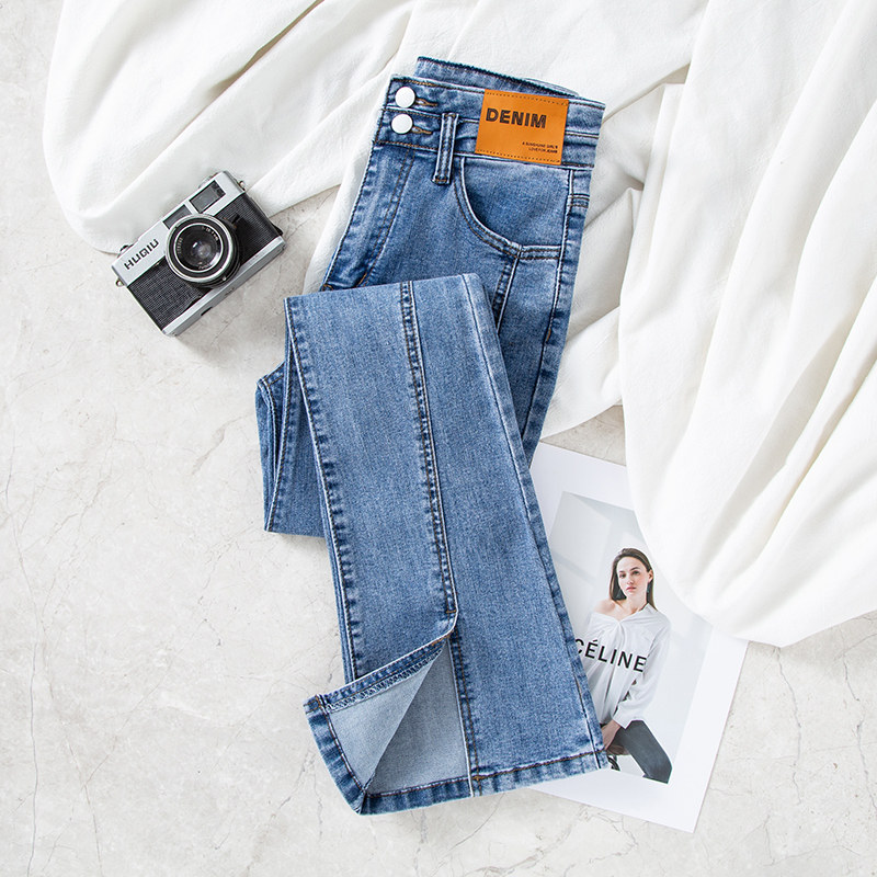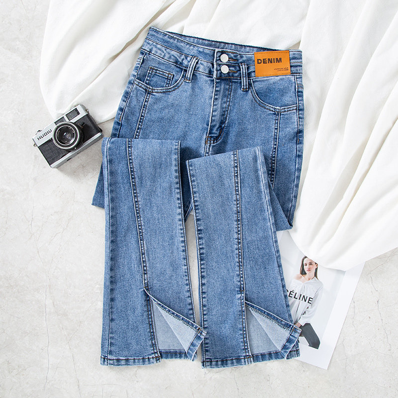 Micro Horn Jeans Female Open Fork 90% Pants Small Subs 2022 Spring Dress New Design Sensation Little Crowns 100 Lap High Waist