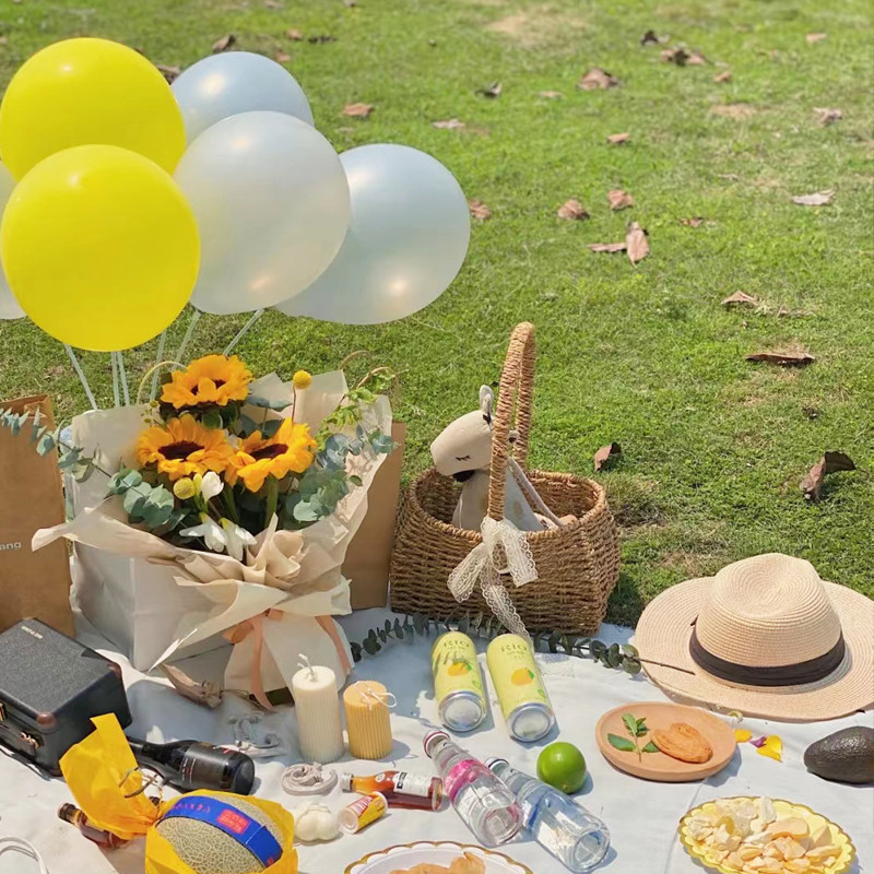 Outdoor picnic balloon decoration ins table floating bracket birthday layout props spring outing picnic supplies must be net red preparation