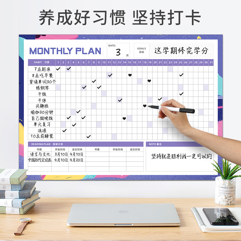 Rewritable monthly planner daily check-in learning 30-day goal work schedule planning memo magnetic wall sticker - Taobao