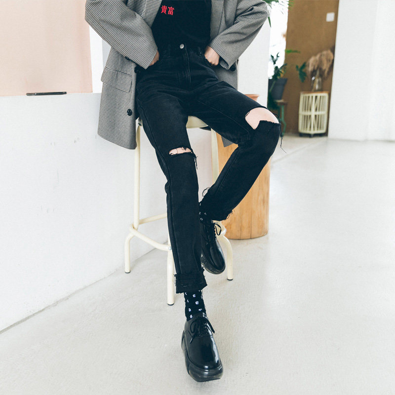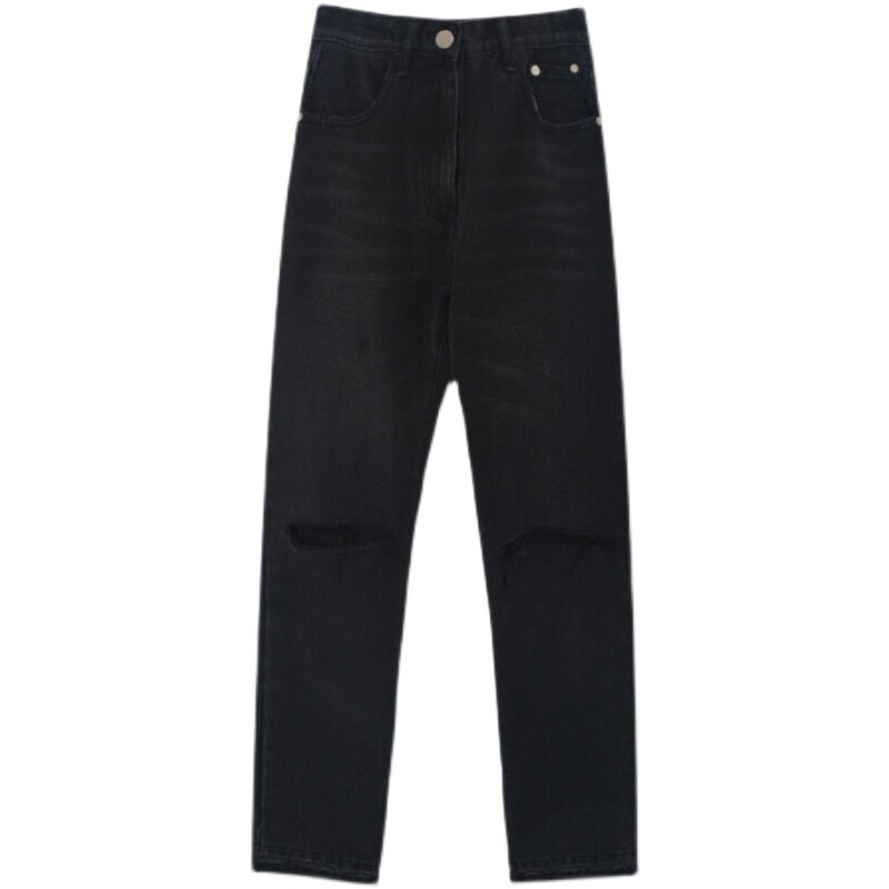 Large size women's ripped jeans women's summer thin section 2022 new mm fat high waist straight pants ins tide