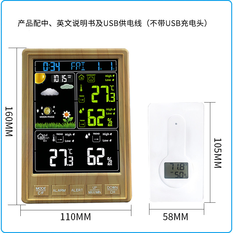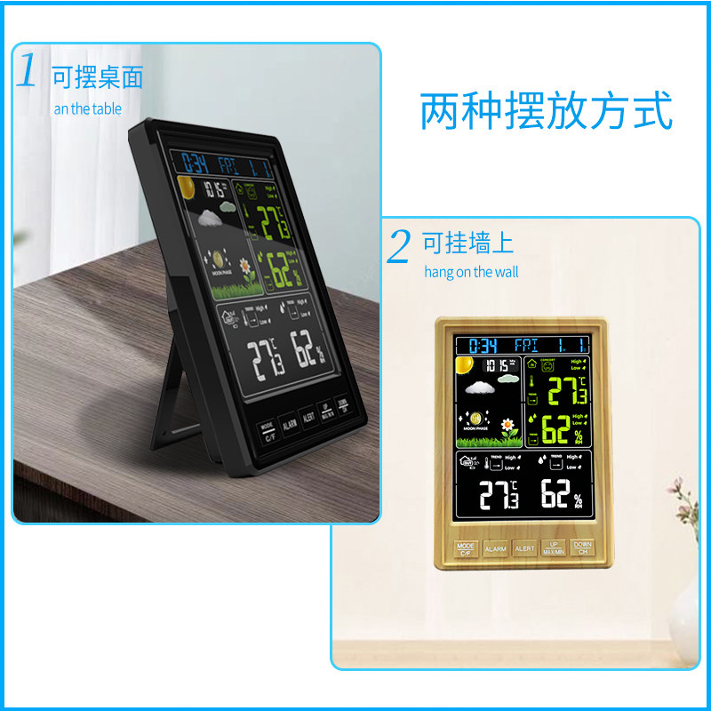 Household thermometer wireless temperature and humidity meter color screen weather station atmospheric pressure weather forecast clock indoor and outdoor living room
