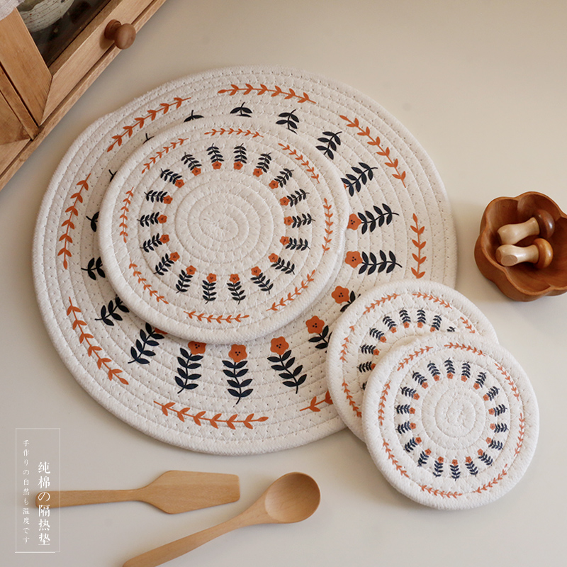 Small floral print -- small frescoed cotton rope chucché round heat insulation cushion dining room Cushion Bowls Dish Table Mat Gourmet Photo 100 hitch