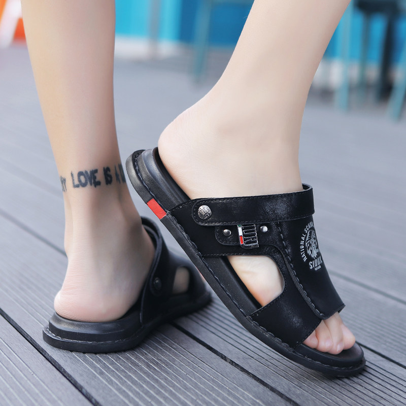 Sandals Male Slippers Summer New Non-slip Soft Bottom Genuine Leather Cool Tug Men Casual Wear and Wear Beach Shoes