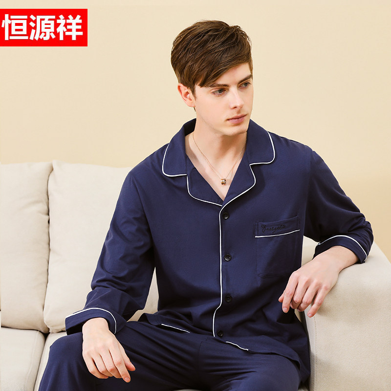 Hengyuan Xiang Sleeping clothes men's spring and autumn clothes pure cotton long sleeve autumn winter thin family clothes with large size and full cotton new suit