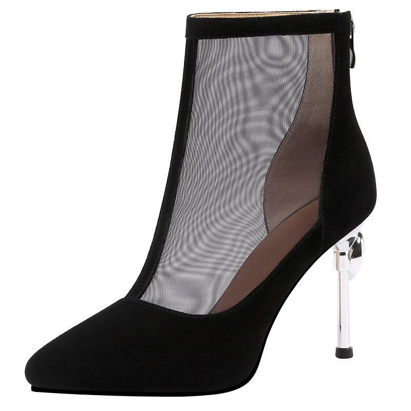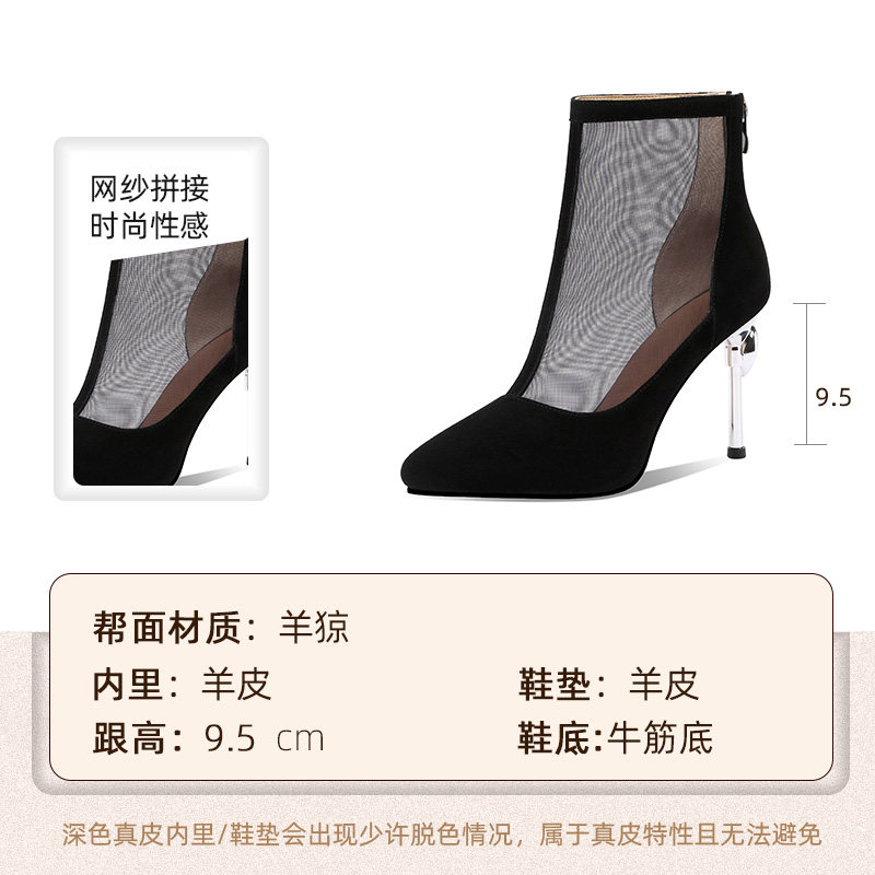 Mesh boots women 2022 spring summer new mesh temperament high heels pointed toe stiletto cutout shoes leather breathable sandals women